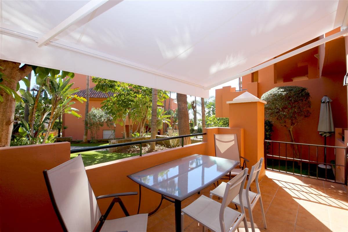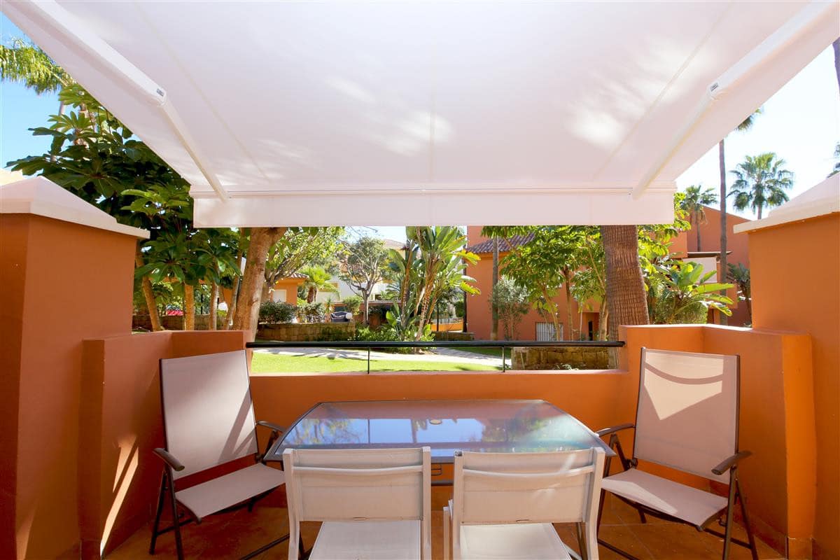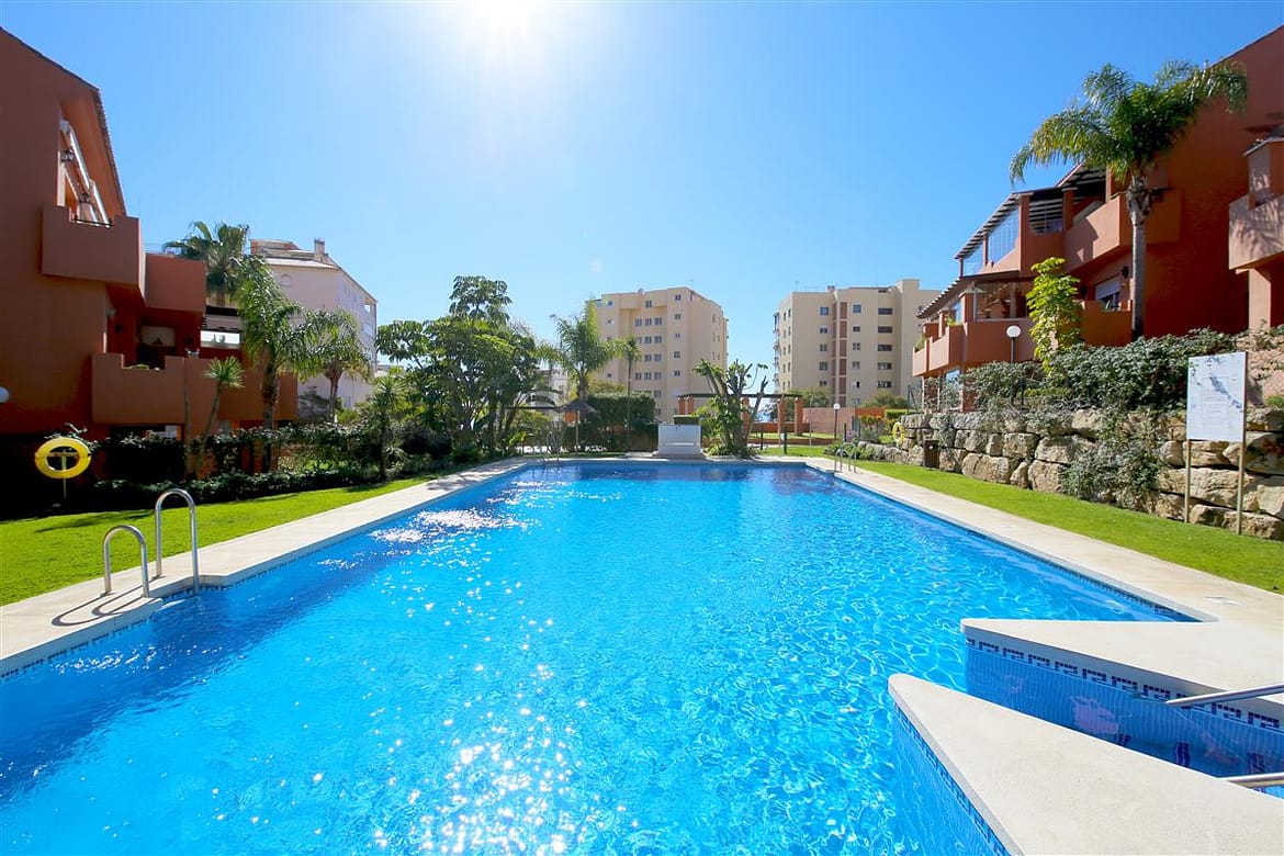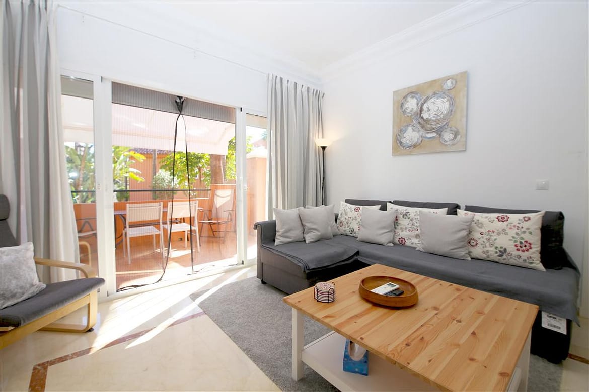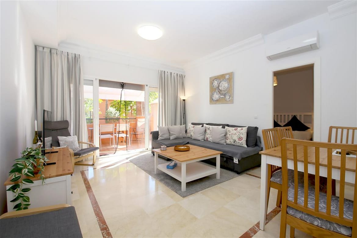 This modern and bright apartment is ideal for couples and small families who are looking for a relaxing holiday close to the beach and town. This spacious one bedroom apartment is located in the well known urbanisation of La Fragata, in the surroundings of Estepona marina. This beautiful property offers a well sized master bedroom, tastefully decorated, it has air conditioning and a king size bed.There is a smart television available. The bedroom benefits from an en-suite bathroom with a large walk-in shower, toilet and hand basin. The double bedroom also has a dressing area with plenty of space for storage in its built-in cupboards. The apartment has a modern kitchen which is fully equipped with all the appliances and all you may need for your holidays. The apartment offers a nice and bright lounge area with air conditioning and direct access to the terrace and community gardens. The lounge offers a sofa bed for a third guest and is equipped with international TV and a high speed internet connection. There is a lovely dining area off the lounge that has space for four guests. The terrace area is facing south east and offers lovely views to the well maintained community gardens and pool area. There are lovely and tranquil path walks within the urbanisation with plenty of Mediterranean and tropical plants. The terrace also offers an outdoor dining area with seating for three guests and has a full sun awning. Parking is on street and there is always plenty of public parking around the port. All together making this apartment a fantastic location for your holidays in Estepona.