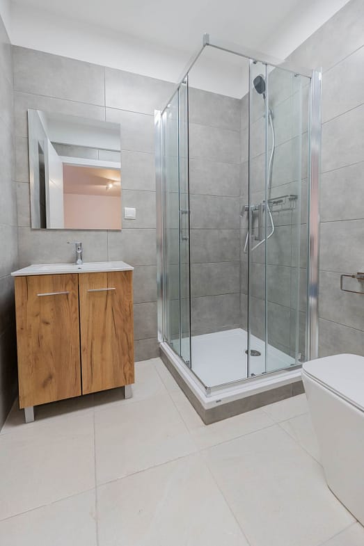 Currently, one of the bedrooms is open-plan, providing spaciousness and light. The owner commits to building and delivering the second bedroom fully finished before the signing of the purchase agreement, included in the price, using a modern sliding partition solution, thus creating two separate bedrooms.