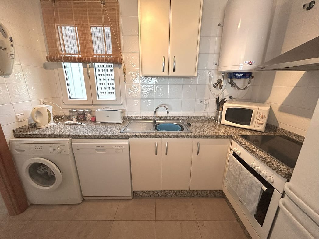 The good sized double bedroom is off the living room. This bright room has plenty of fitted wardrobe space and access to the main terrace. The bathroom is also off the entrance lobby. This carefully looked after apartment is in very good condition, tastefully furnished and ready for immediate occupation.