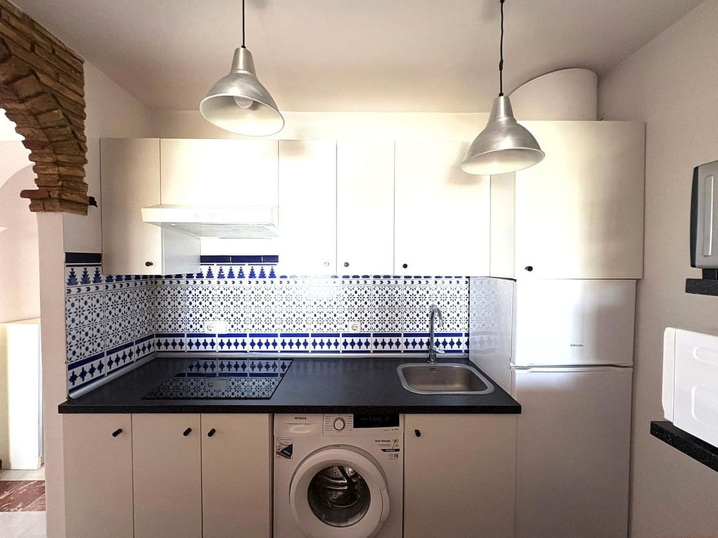 The property features 1 spacious bedroom with fitted wardrobes, a full bathroom with traditional Andalusian tiles, and a layout designed to make the most of every square meter. The bright and welcoming living room includes a fireplace that adds warmth and character—perfect for cozy evenings. The open-plan kitchen, fully equipped, blends seamlessly with the living area, creating a functional and modern atmosphere while keeping its classic touch.