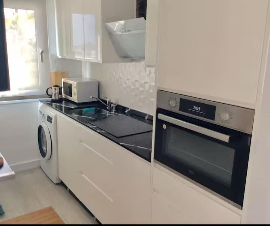 The apartment consists of a large living room with a modern kitchen recently renovated.
