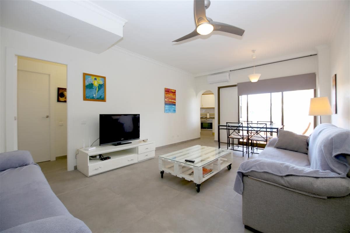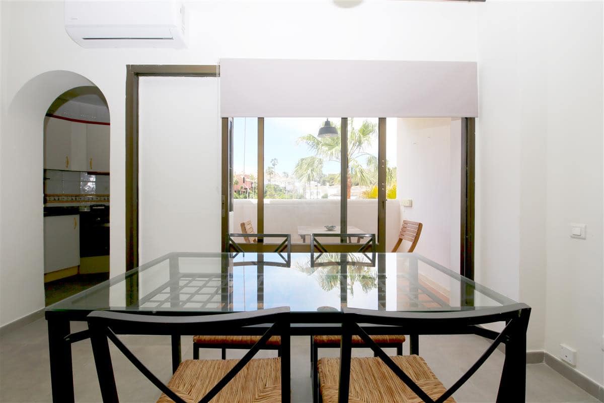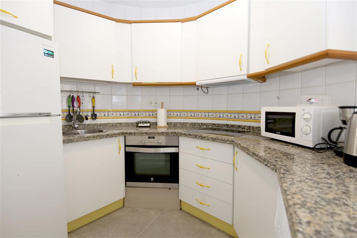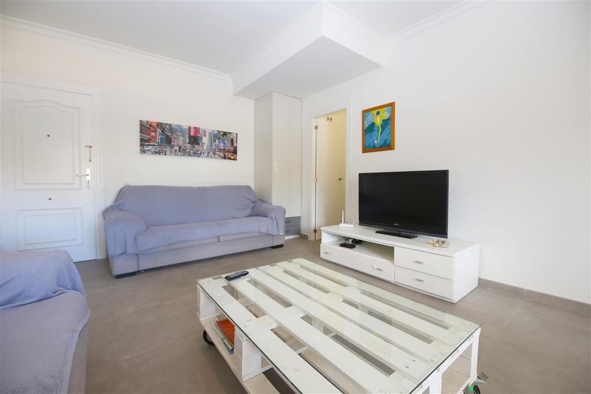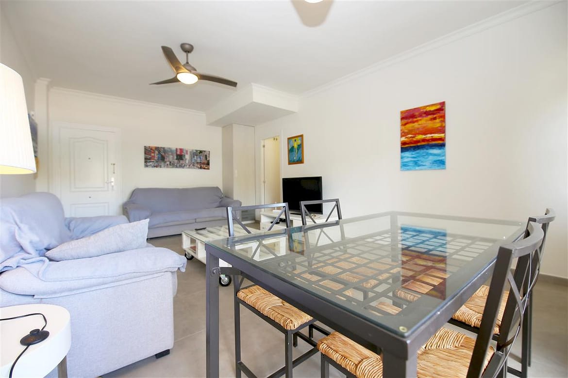 A spacious apartment located in the popular complex of Bahia Estepona, right next to the beach. This cosy one bedroom property offers comfortable accommodation for two guests. The large living room consists of a lounge area with two comfortable sofas (one of the sofas is actually a sofa bed so a third guest may use it). and a flat-screen TV with a wide package of national and international channels including Sky TV. There is a dining table with seating for up to four guests and the typical kitchen is well equipped and has all the basic appliances for your holiday (no dishwasher). The good sized en-suite master bedroom is equipped with a king size bed (150x190cm) and air conditioning throughout the apartment. The en-suite bathroom has a shower, WC, bidet and sink. The property has a small, west-facing balcony with views to the communal gardens and mountains. Just outside the apartment building there is a large saltwater swimming pool with separate children's pool and a little bit further, direct access to the beach and bike trail. Within the closed community there is open and secure parking and a tennis court. We do recommend car hire for this location. All in all, a great base for a memorable family holiday in Estepona.