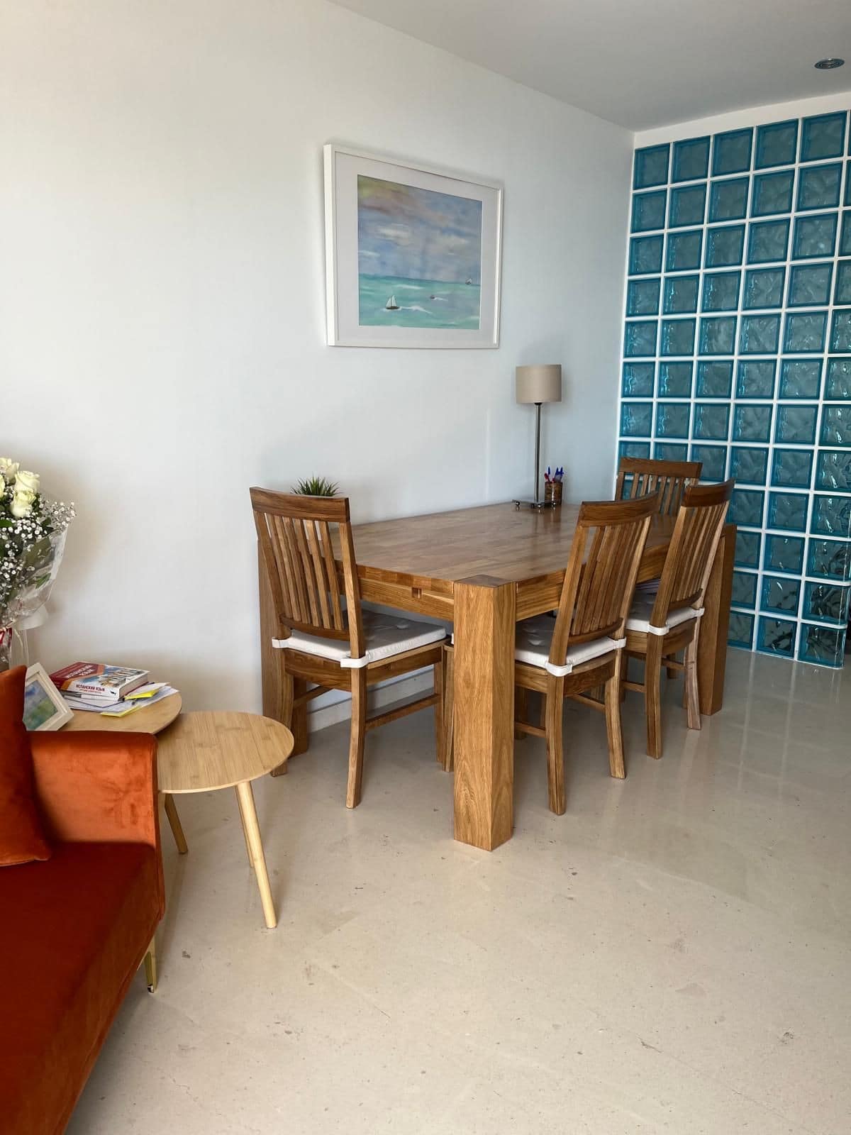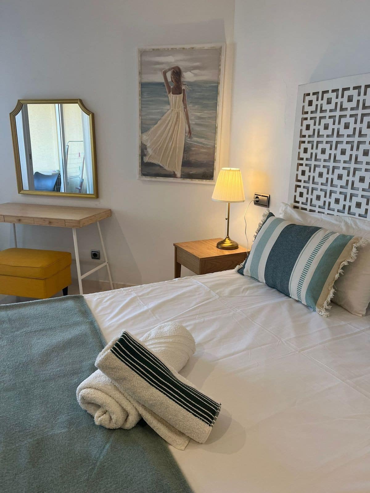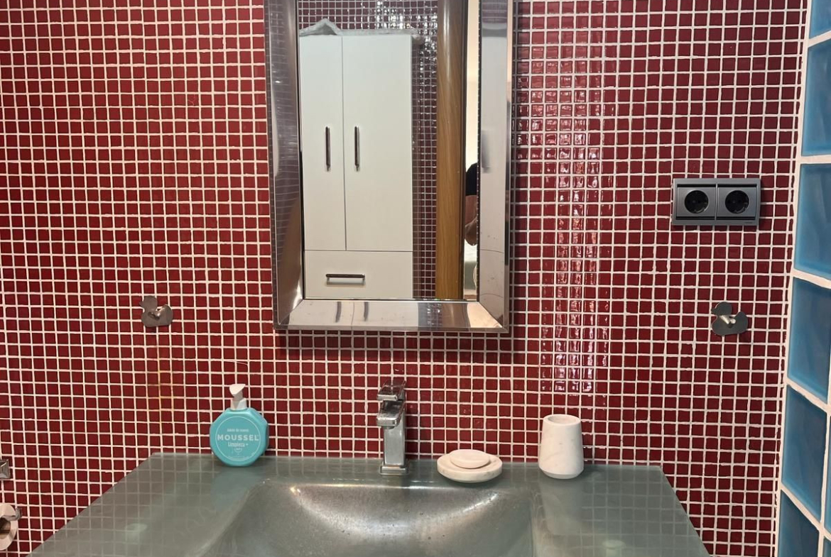 Second floor has big living room with fully equipped kitchen, extra folding bed and sofa bed, own 42” TV, own AC and balcony right to Marbella Promenade Passeo Miritimo.