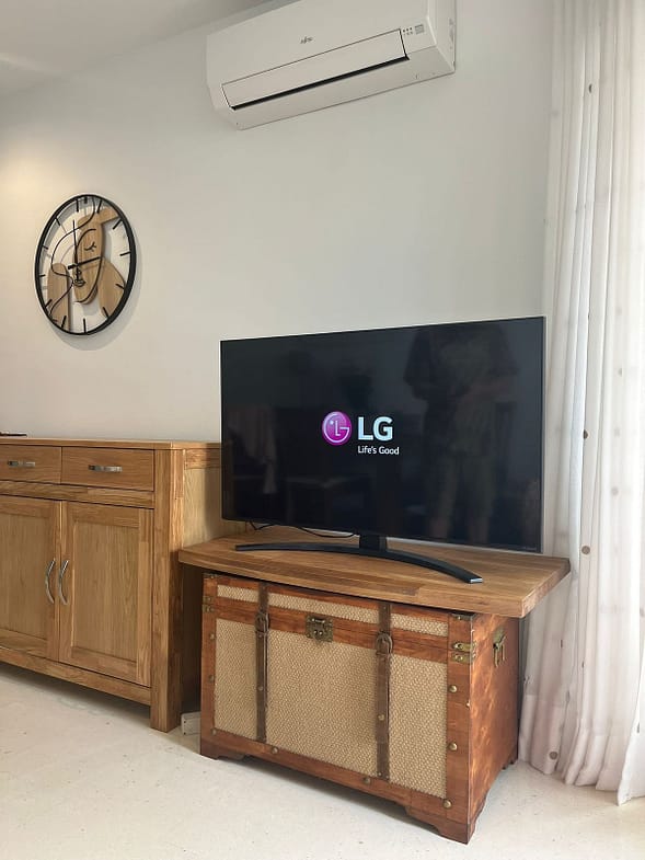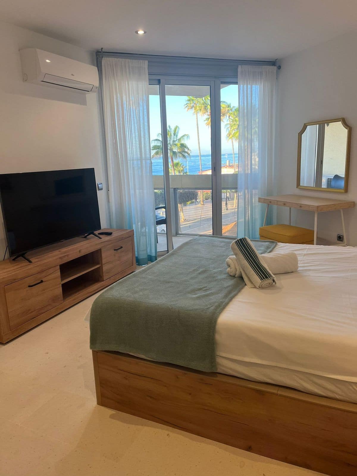 1st floor has big bedroom, WC and shower, own AC, own 50” TV and own balcony right to the sea.