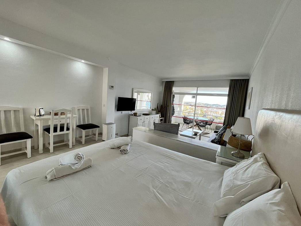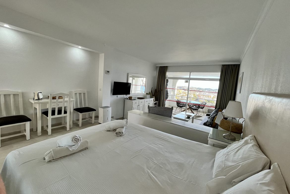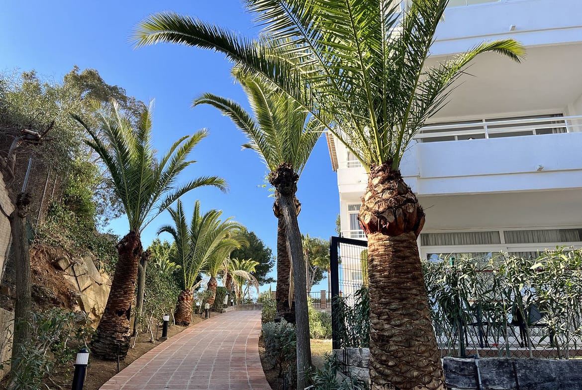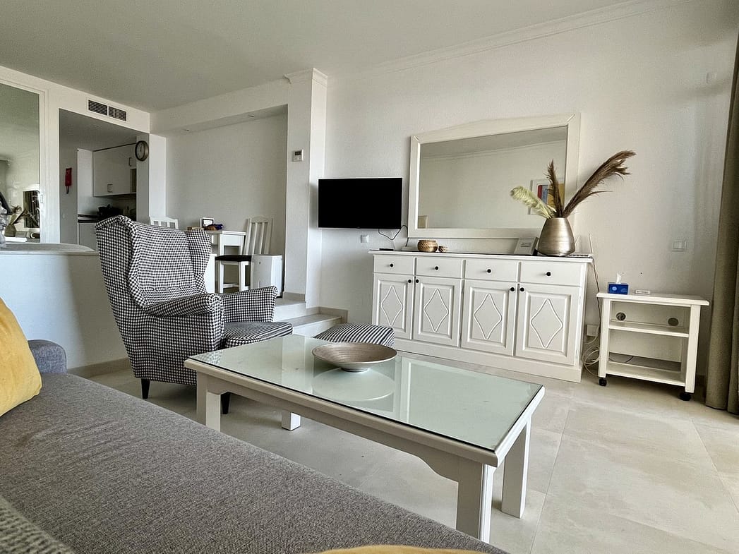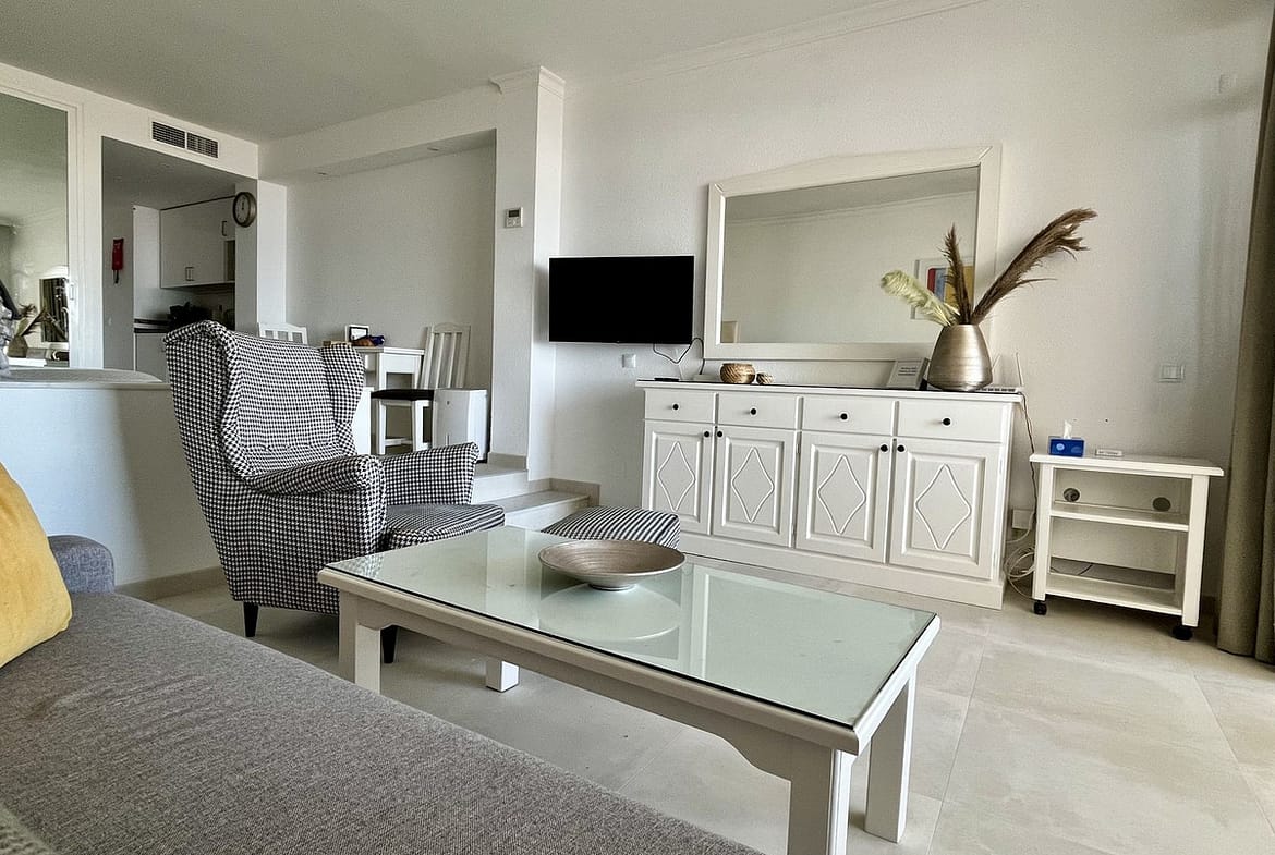 The property is located in the gated "Rancho B" housing estate. The estate is filled with greenery and flowers, creating a peaceful place to relax during your holidays. Residents have access to two communal swimming pools, which are just a few steps from the apartment. There is a bar by one of the pools and the beach and further bars are a short walk away.