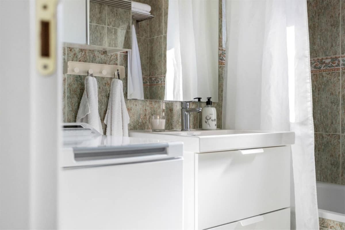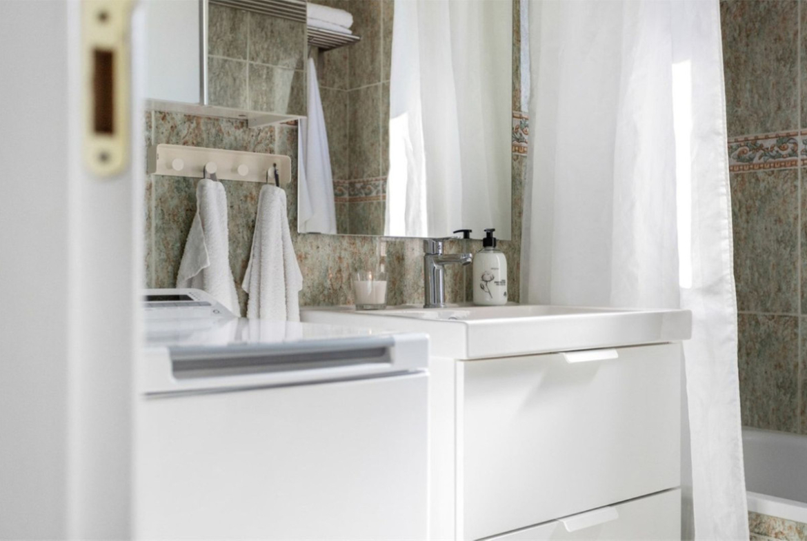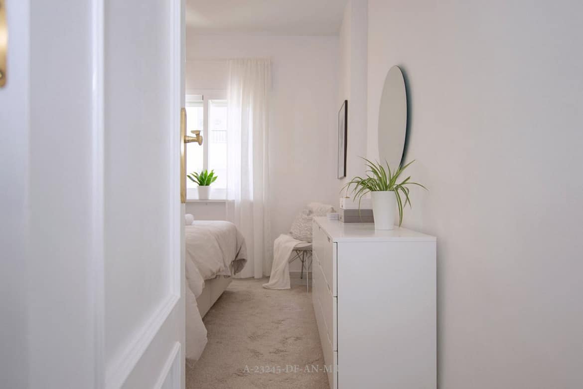 The apartment is on a corner lot, making it more private and larger than usual. Upon entering there is a corridor that leads to the living room, on the right is the large exterior bedroom and a complete bathroom with a bathtub, and in the corridor there is an additional built-in wardrobe.