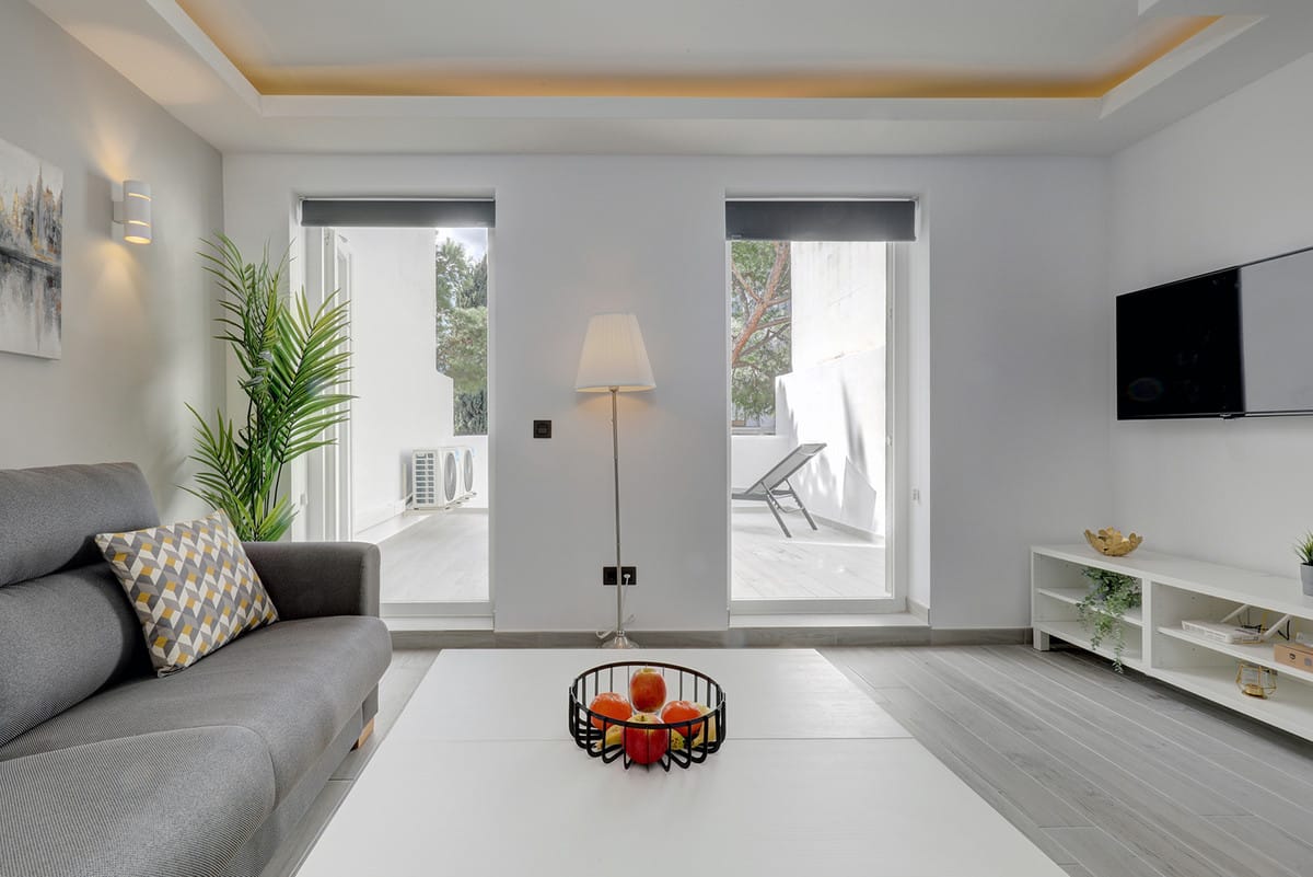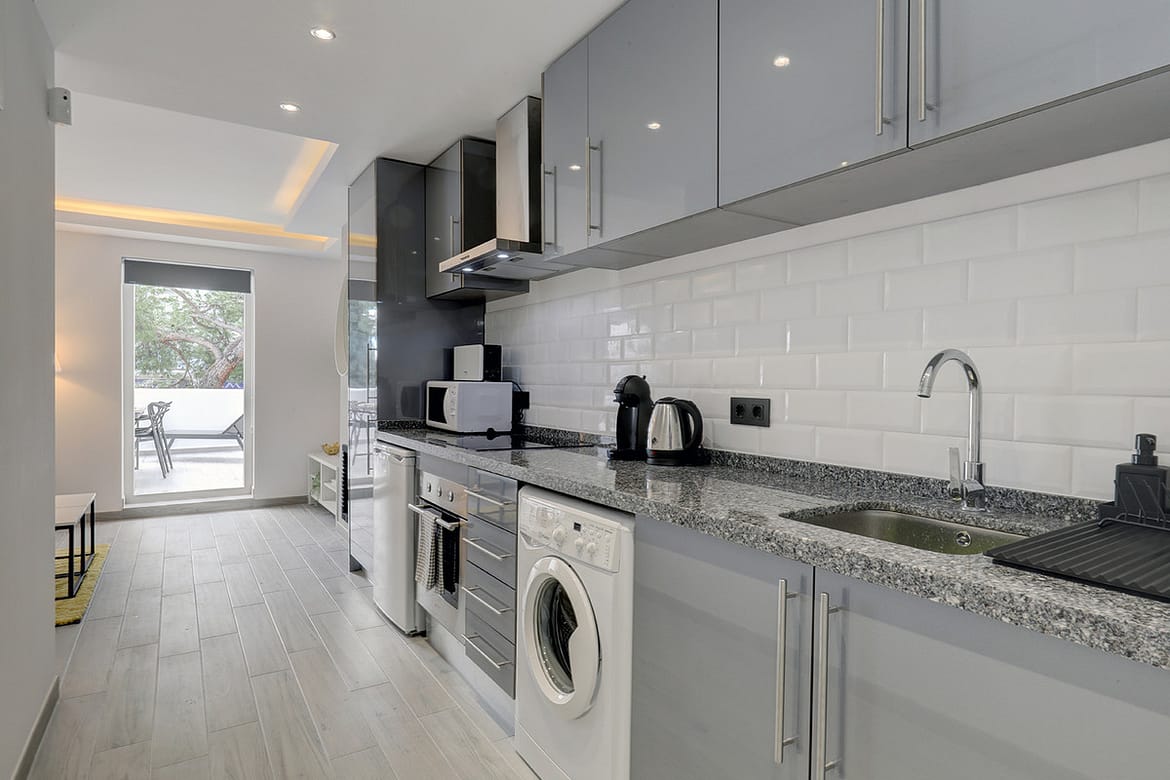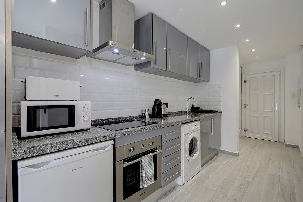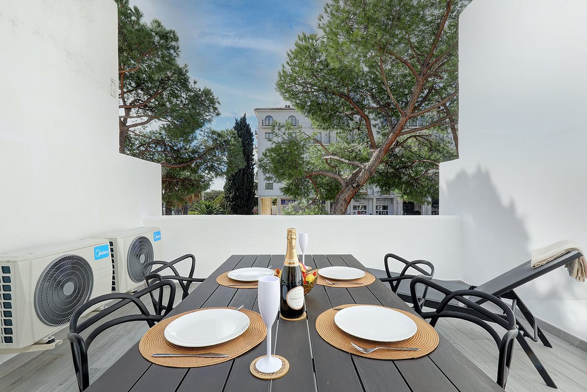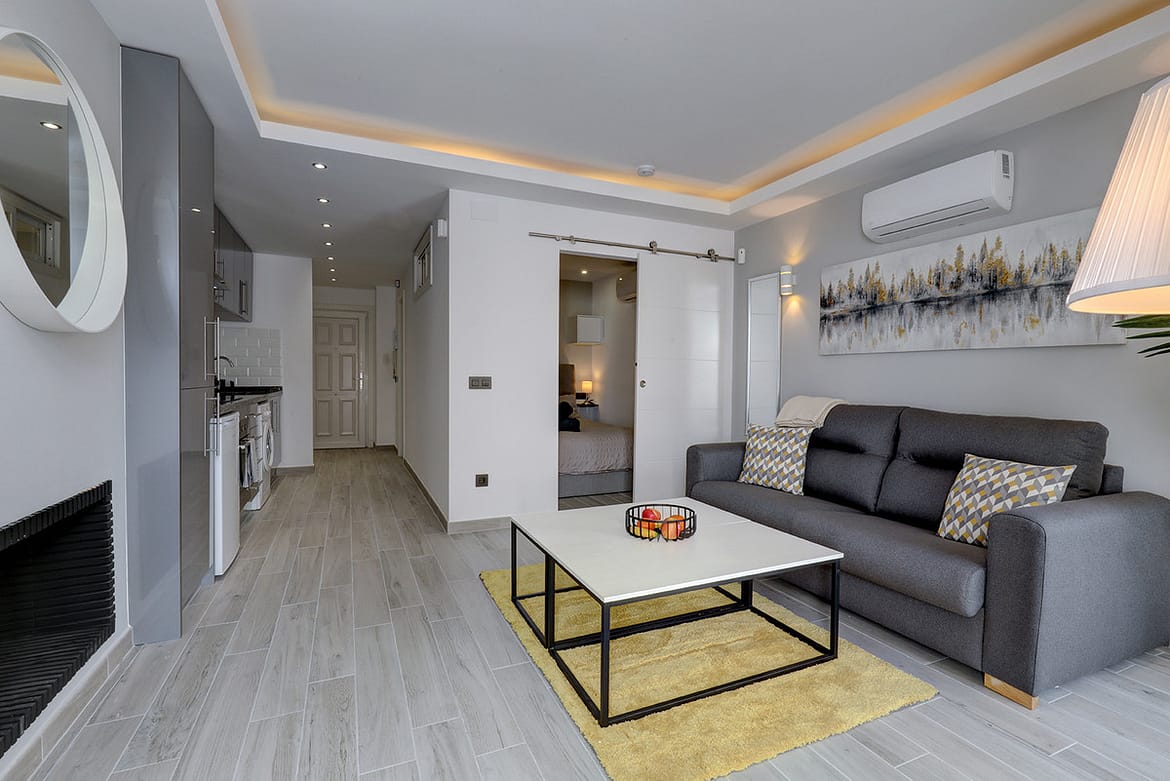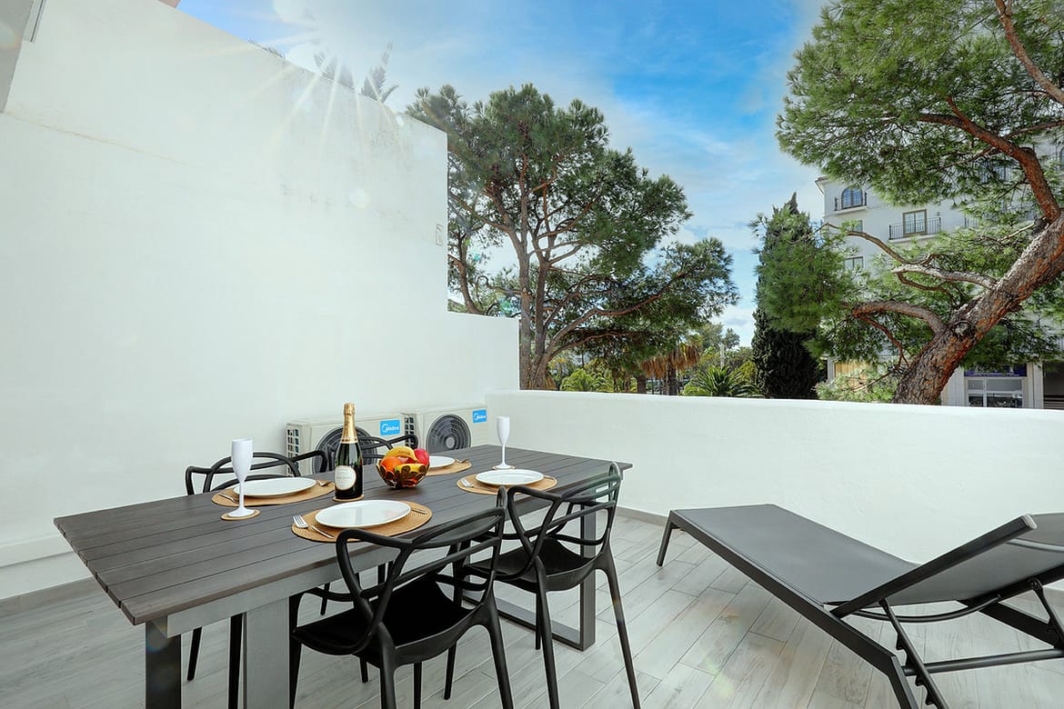A completely renovated 1 bedroom apartment situated next to the Casino in Nueva Andalucia. With walking distance to everything you could need this apartment is the ideal holiday location. Situated on the 1st floor, large pool and garden area with sunbeds. Inside the apartment a large walk in shower, modern fully equipped kitchen, 1 guest bedroom leading on to the lounge area. Double sofa bed with the lounge leading on to the large terrace with table and chairs and room to sunbathe. Staying here there is no ned for a car as you can walk to Puerto Banus in approx 10 minutes and you are surrounded by many restaurants and shops to cater for your every need.