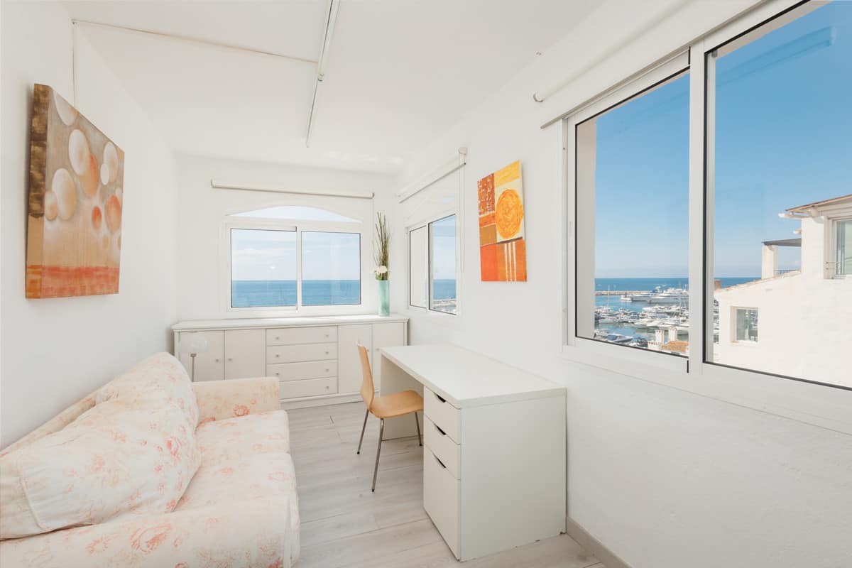 But the best is yet to come: the penthouse itself! The property consists of a bedroom with an en-suite bathroom, a living-dining room, an office area, a kitchen and a terrace with views of the marina and the sea – everything you need for a perfect holiday!