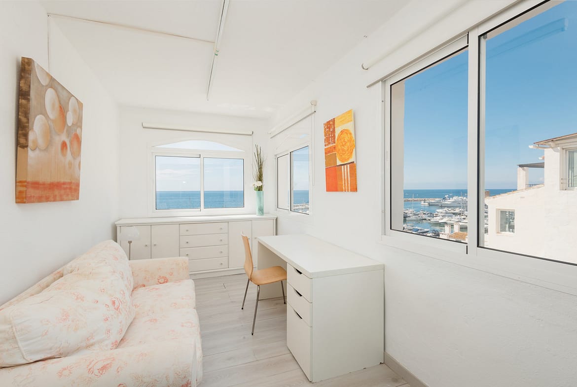 But the best is yet to come: the penthouse itself! The property consists of a bedroom with an en-suite bathroom, a living-dining room, an office area, a kitchen and a terrace with views of the marina and the sea – everything you need for a perfect holiday!