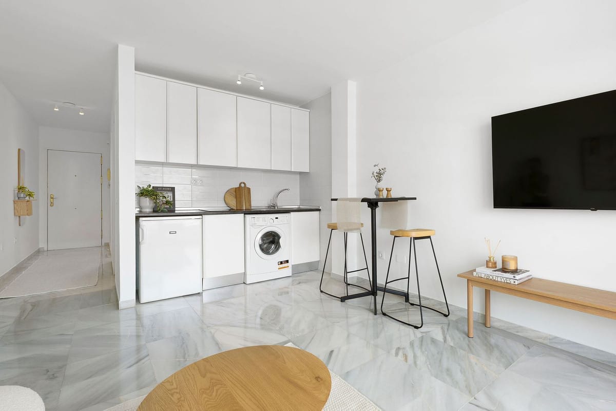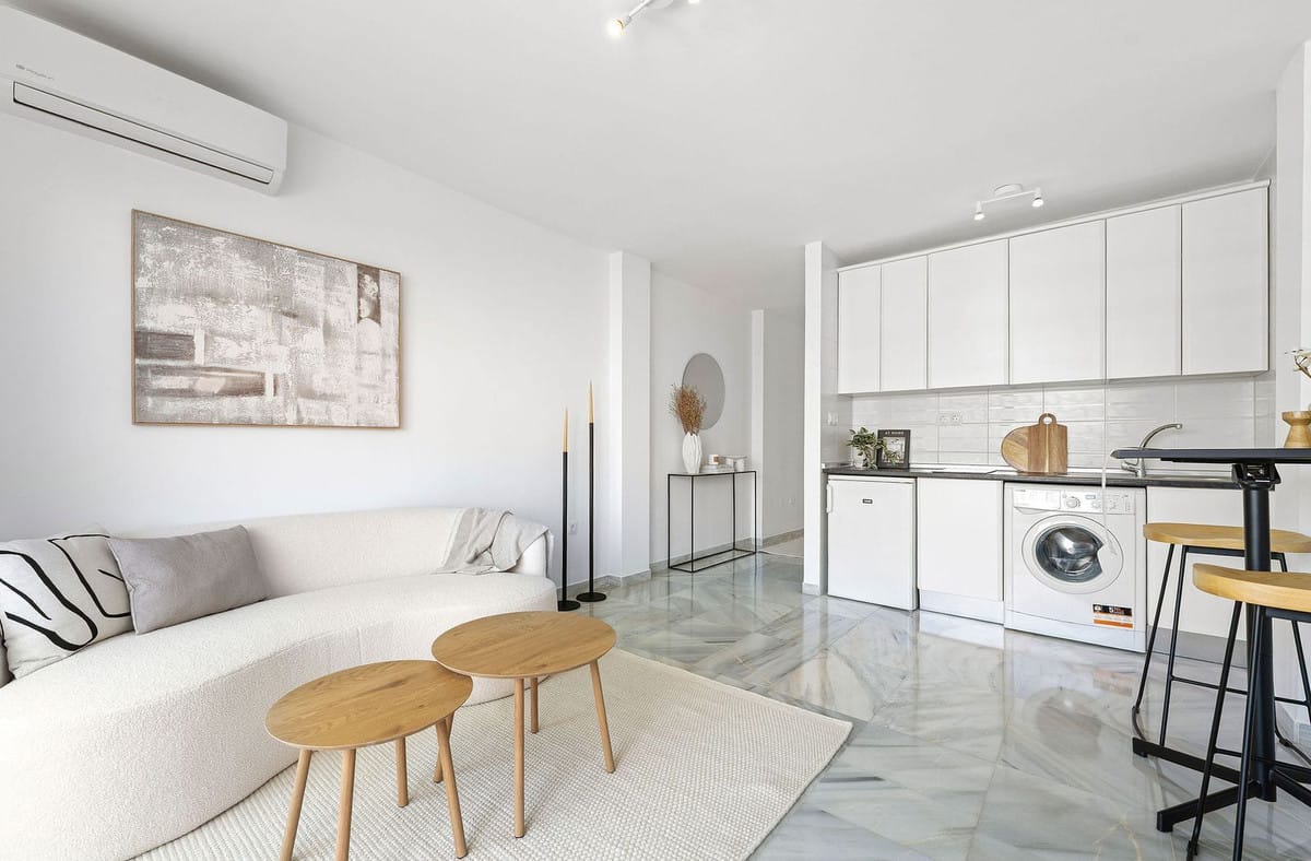 New apartment on the seasonal rental market! Charming one-bedroom apartment decorated in a Scandinavian style with stunning sea views, located in a cozy development near the beach in Riviera del Sol, Mijas Costa, Málaga.