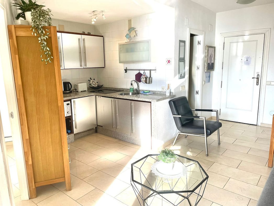 The complex resembles a resort, with high-quality facilities including a fully equipped gym, several shops on-site, and a 24-hour reception. Constant security and attention ensure peace of mind and comfort. You'll also have direct access to the beach and can enjoy spectacular swimming pools with water slides, perfect for fun-filled family time.