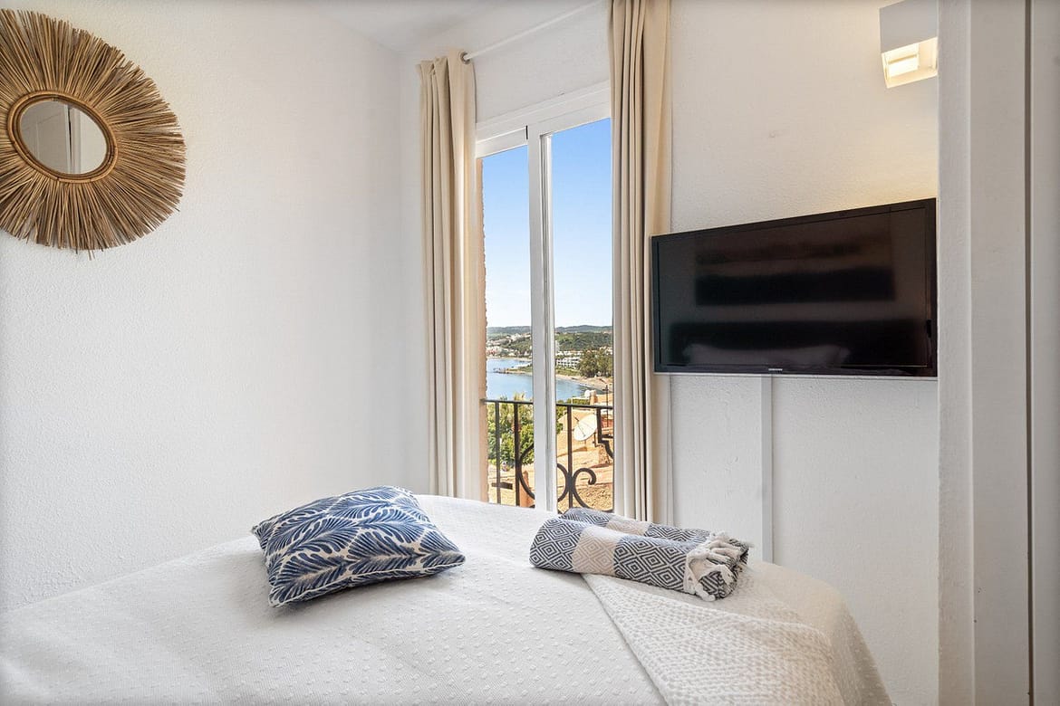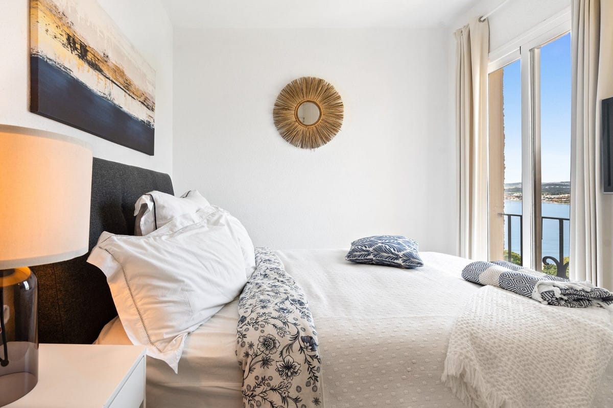 The apartment is located on the middle floor of a well-maintained building within a gated community. It benefits from a bright open-plan layout with a fully equipped kitchen, dining and living area, all opening onto a private terrace with direct views over Cristo Bay and the sea. The bedroom also enjoys the same spectacular outlook, making this home ideal for waking up to inspiring Mediterranean panoramas.