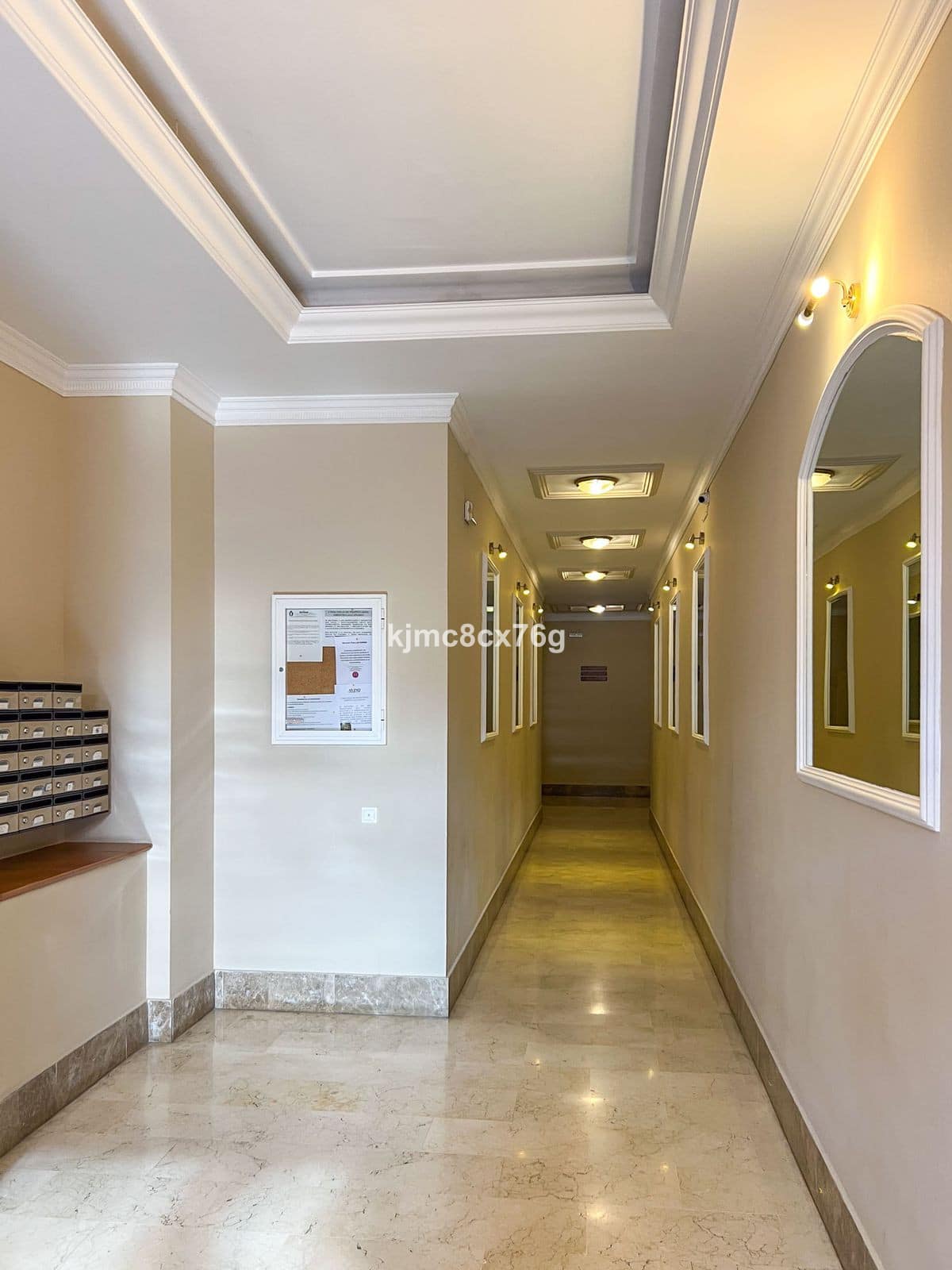 The building has an elegant entrance with mirrors, security cameras, multiple elevators, and underground garage.