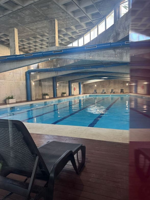 Inside the complex, there is a library on the third floor, with mountain views, ideal for relaxing while reading. On the ground floor, there is a gym, sauna, Turkish bath, and jacuzzi. There is also a heated indoor pool with a lifeguard on duty year-round.