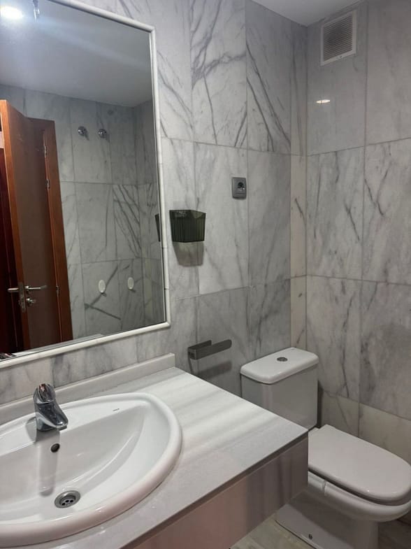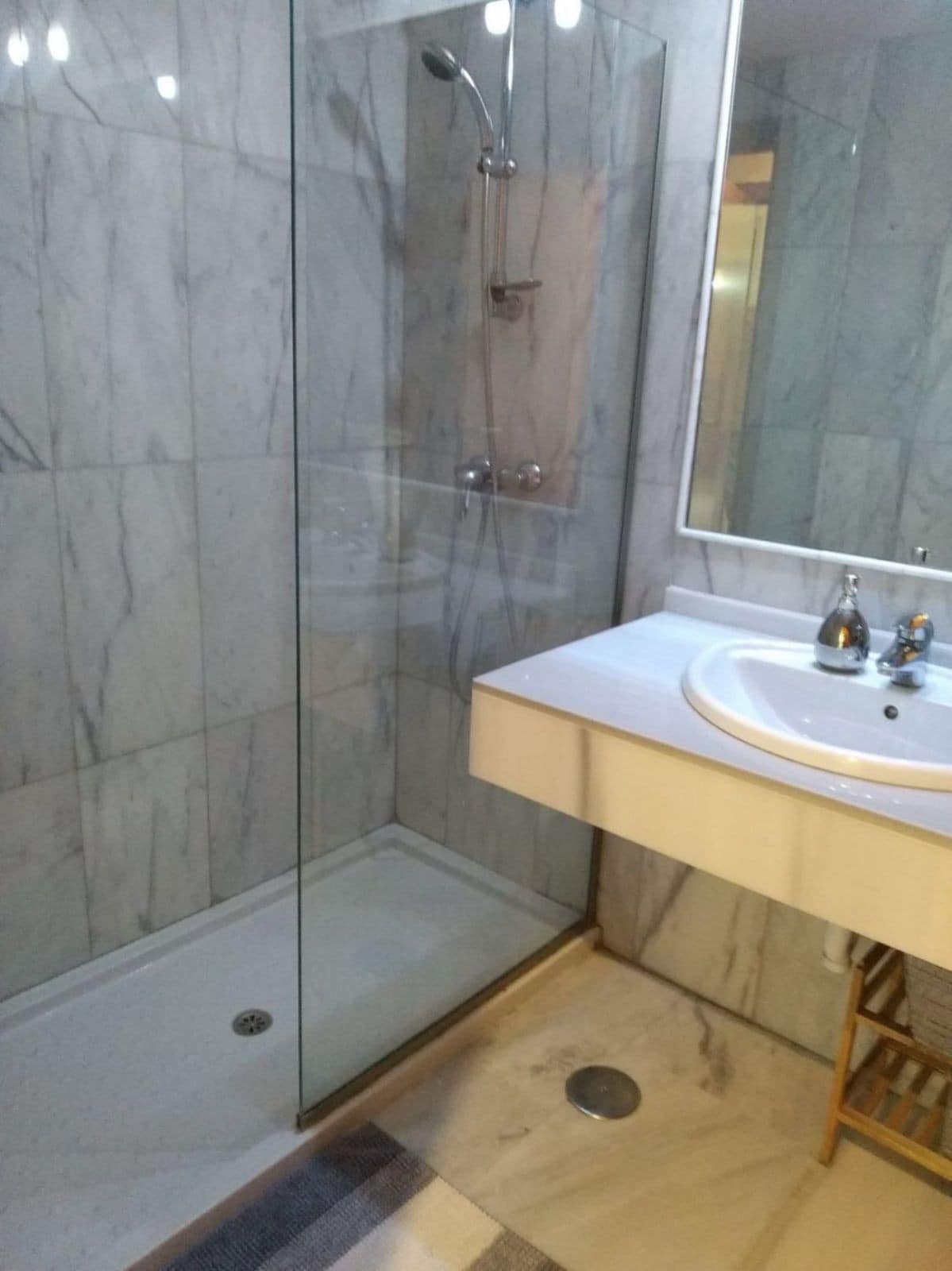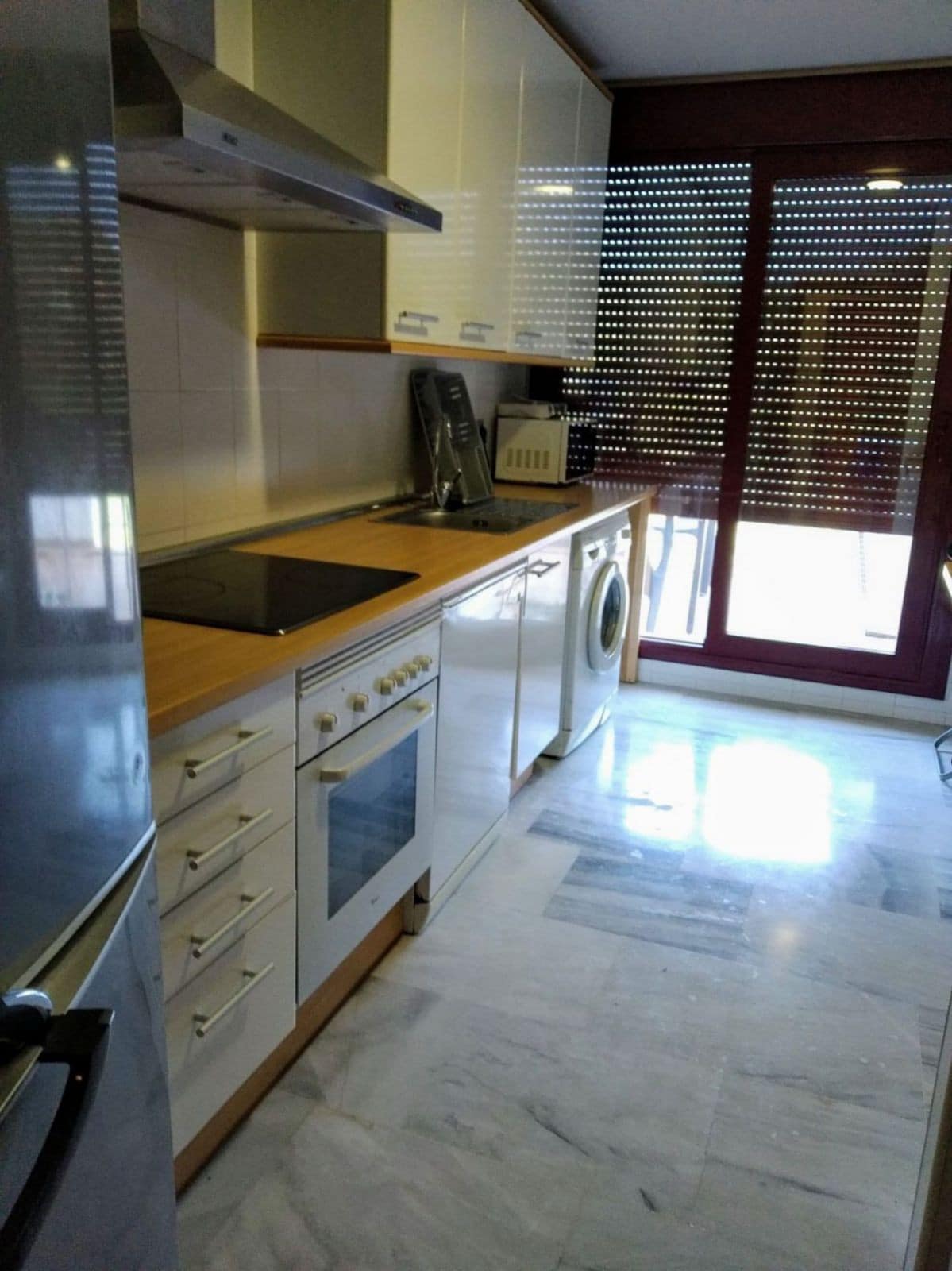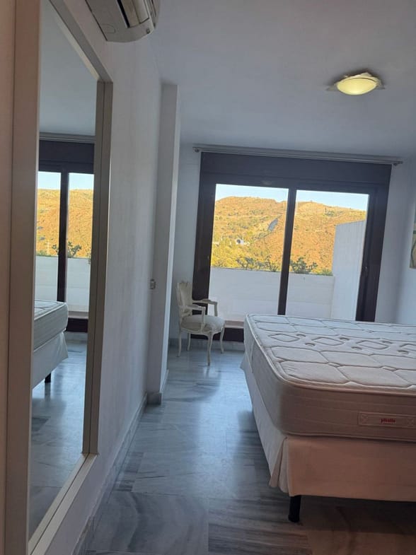 The kitchen is fully equipped with a ceramic hob, oven, washing machine, dishwasher, and refrigerator. It also has direct access to the large terrace. The bedroom has an en-suite bathroom, built-in wardrobes, and air conditioning. The bedroom has direct access to the apartment's terrace. The bathroom is complete and equipped.