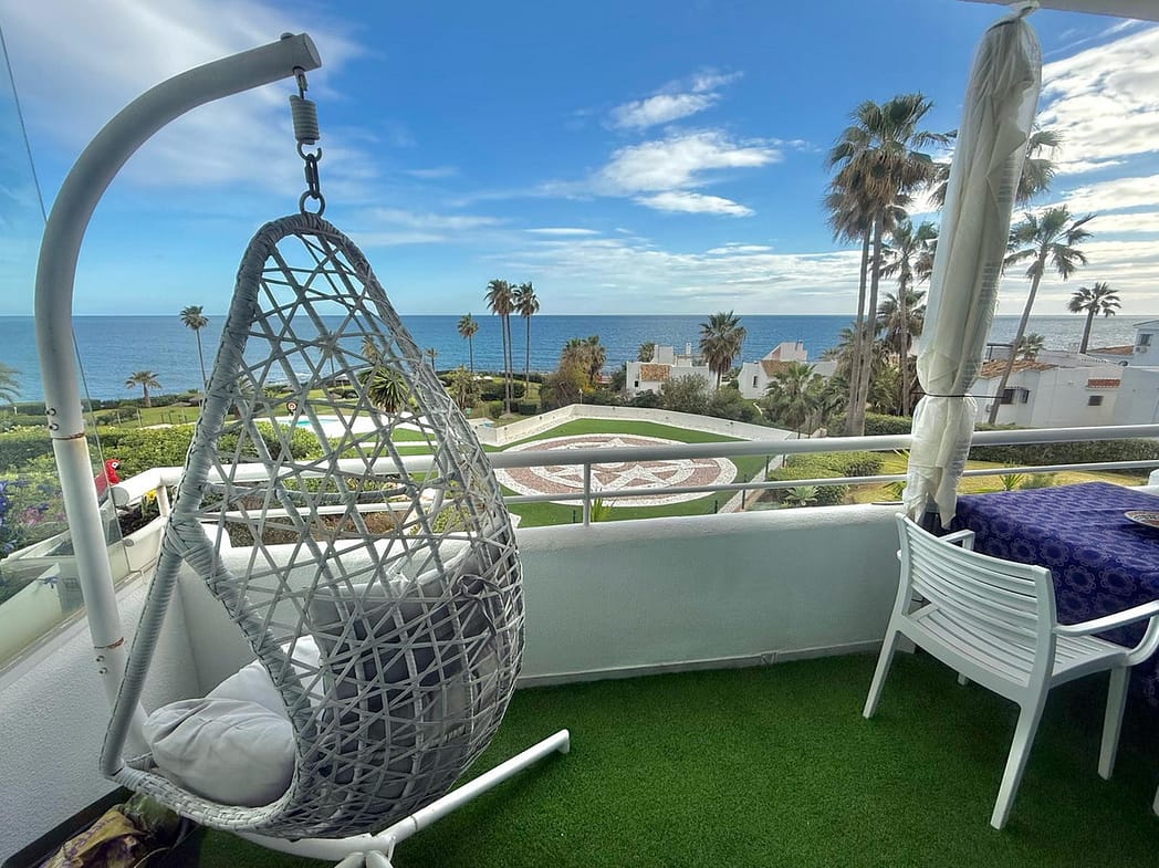 Wake up to breathtaking, uninterrupted views of the sea from this stunning frontline beach apartment. Designed with an open-plan layout, the interior seamlessly connects the living space with the kitchen and terrace, creating a bright and airy ambiance. The terrace offers the perfect setting for outdoor dining while enjoying the spectacular coastal scenery.