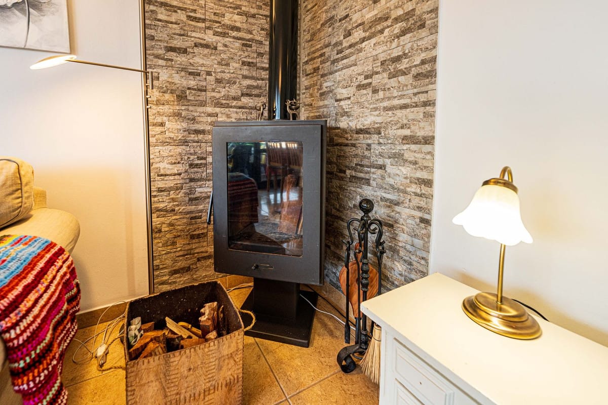 The main floor has been completely updated with new electrical wiring, a renovated kitchen, and a fully modernized bathroom. The elegant bathroom offers underfloor heating for ultimate comfort. The cozy living room with a fireplace turns this home into a true year-round haven. A glass-enclosed terrace provides a pleasant extra space where you can enjoy beautiful views all year round, all the way to the sea.