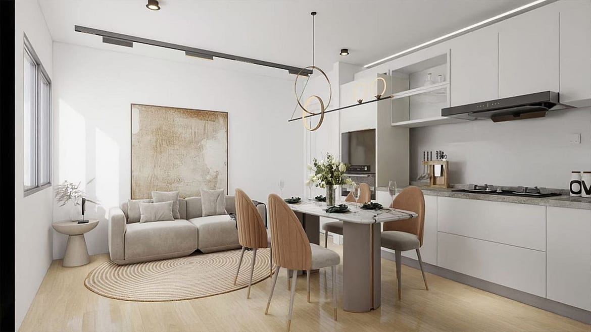 It's a building with a ground floor and a mezzanine for commercial premises, and a first and second floor for residential use. On the same floor, with a single entrance, there are a total of four apartments (all for sale). Two of them are priced at €173,000 each, and the other two are priced at €178,000 each. Perfect for those looking to use the apartments as holiday rentals or vacation homes.
