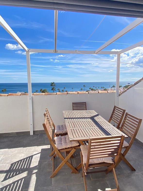 This modern bright property is perfect to enjoy your own special holidays as well as giving you a favorable investment opportunity. It has a high occupation for holiday rentals due to it's great location, which is within walking distance to the beautiful sand beaches and all local amenities of Manilva. This one bedroom, fully furnished penthouse gives the option to have peaceful break for two, or due to it's spacious living area with sofa bed, enables an extra two people to stay so you can enjoy with friends or children as well. The living area is connected to a fully equipped kitchen complete with fridge freezer, dishwasher, washing machine, oven and microwave. Sit and enjoy amazing sea views from all the terraces with the added advantage of having your own personal lift to access the penthouse. There are adults and children's pools to enjoy within a monitored and secure gated complex.