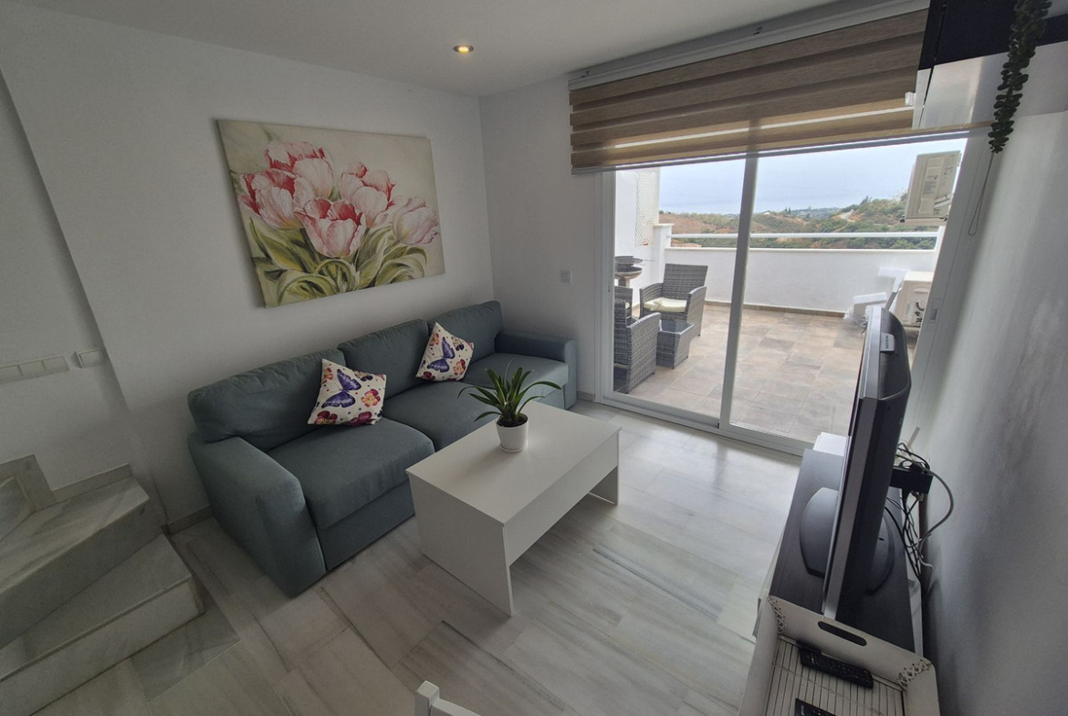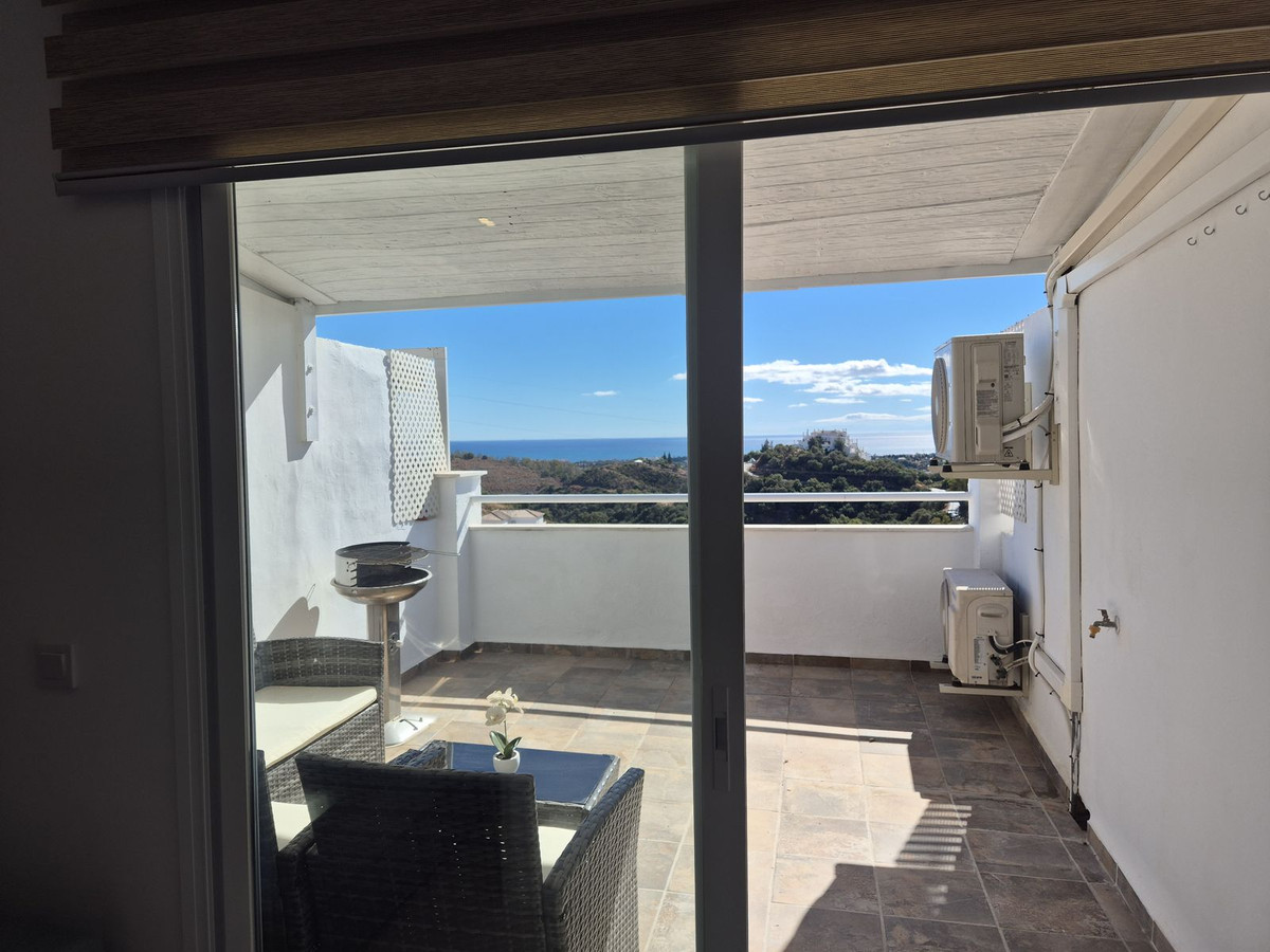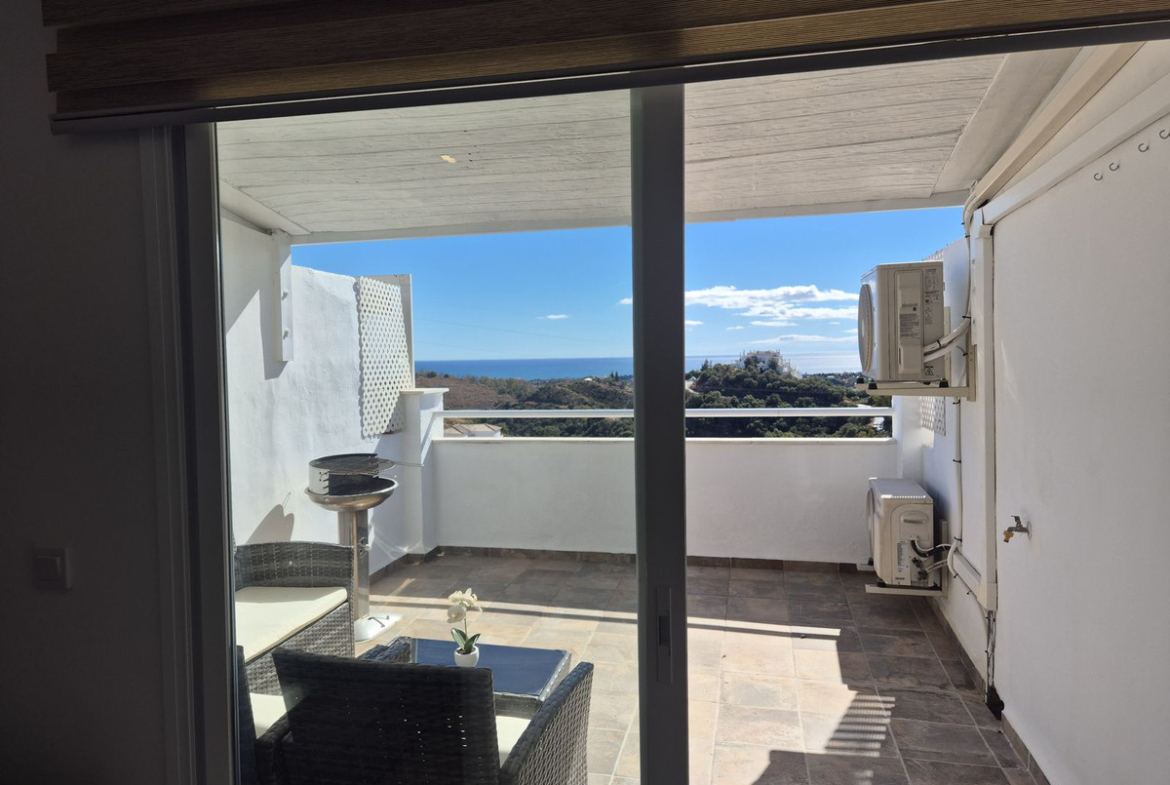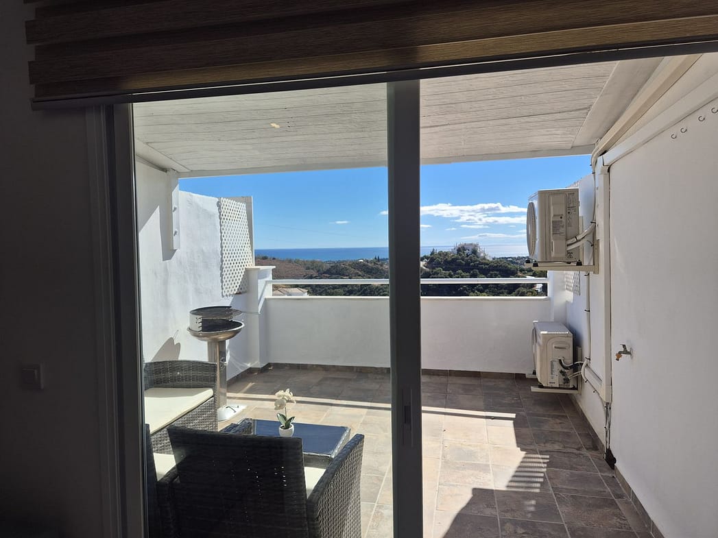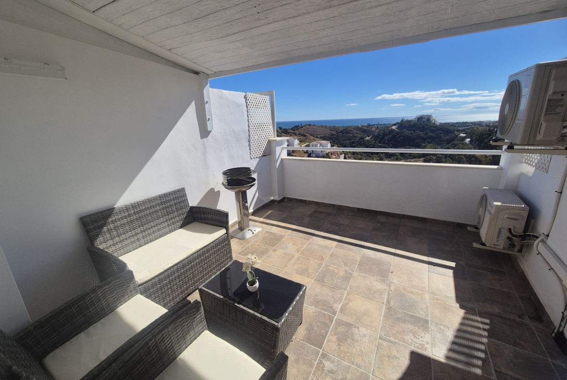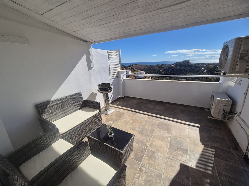 Spectacular panoramic views of the sea, Africa, and mountains are ideal for nature lovers, tranquility, and stargazing from a large private terrace in a top penthouse, offering maximum privacy. The duplex penthouse is perfect for holidays on the Costa del Sol, just 20 minutes by car from Puerto Banús, 10 minutes from Estepona and Benahavis, 5 minutes from the Laguna Village shopping center, Aldi, Buguer King, and a gas station, and 40 minutes from the airport. Excellent for buying your first home, living there for a few years, and then selling to increase its value, due to the area's high growth potential. It's a magnificent investment due to the high demand for small apartment rentals among foreign tourists and local workers without children. Low maintenance costs for community fees and property taxes.