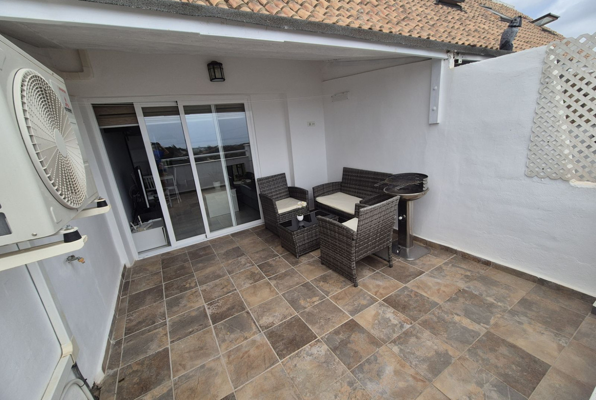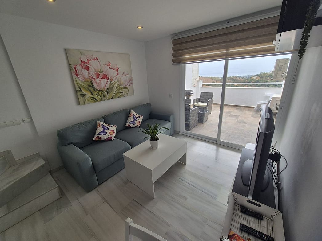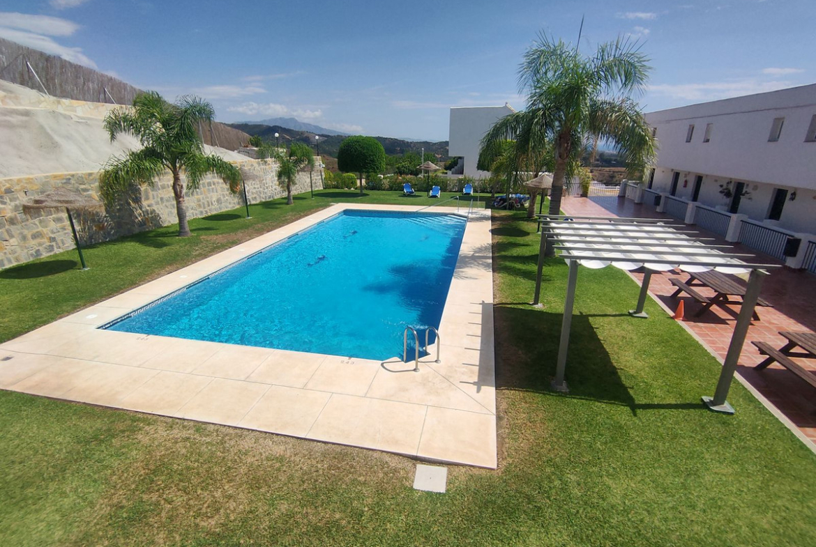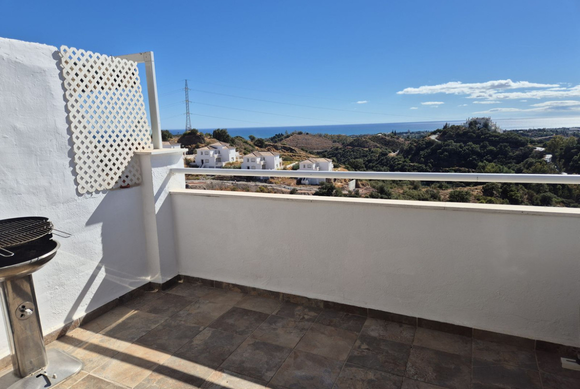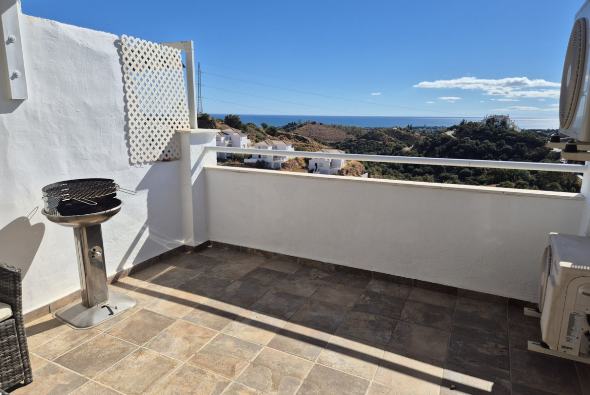 Spectacular panoramic views of the sea, Africa, and mountains are ideal for nature lovers, tranquility, and stargazing from a large private terrace in a top penthouse, offering maximum privacy. The duplex penthouse is perfect for holidays on the Costa del Sol, just 20 minutes by car from Puerto Banús, 10 minutes from Estepona and Benahavis, 5 minutes from the Laguna Village shopping center, Aldi, Buguer King, and a gas station, and 40 minutes from the airport. Excellent for buying your first home, living there for a few years, and then selling to increase its value, due to the area's high growth potential. It's a magnificent investment due to the high demand for small apartment rentals among foreign tourists and local workers without children. Low maintenance costs for community fees and property taxes.