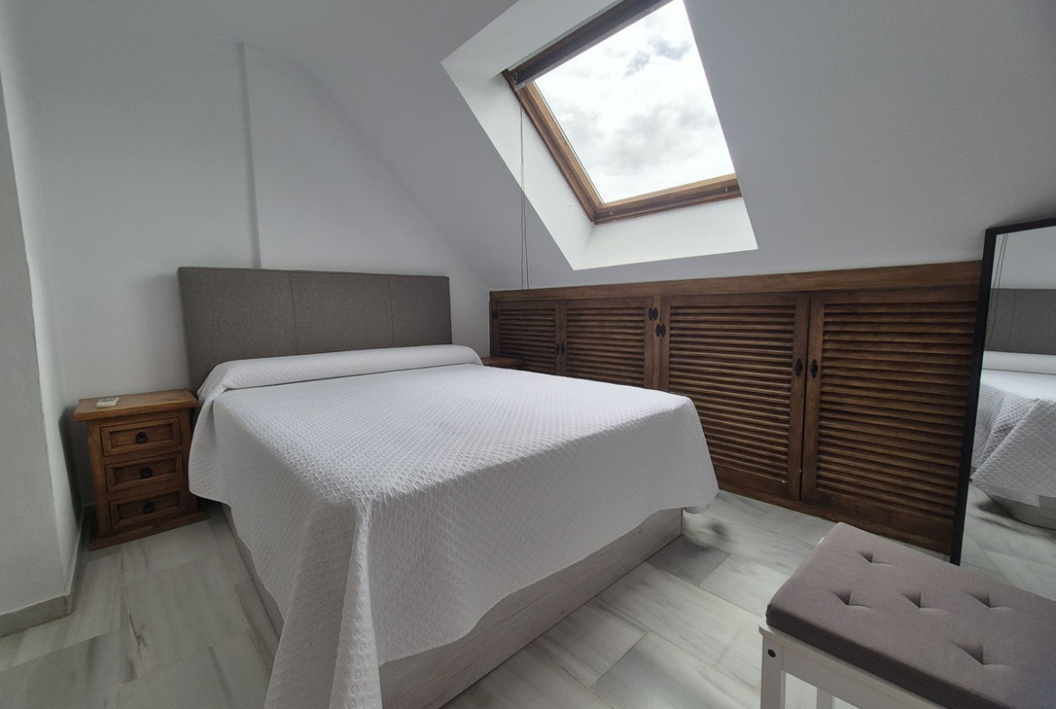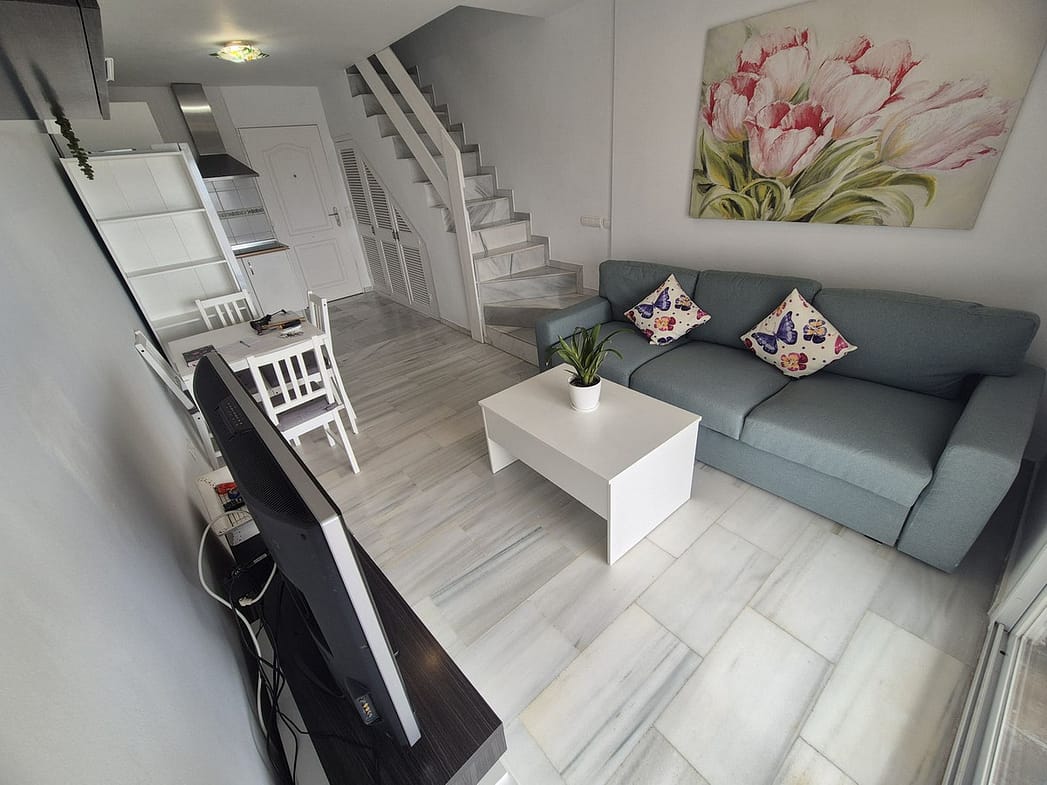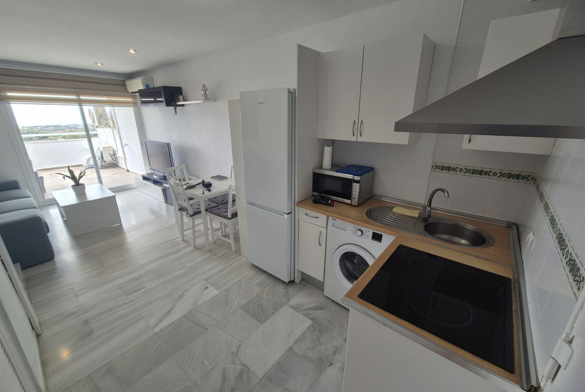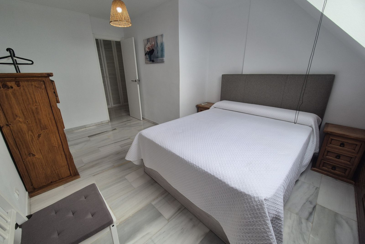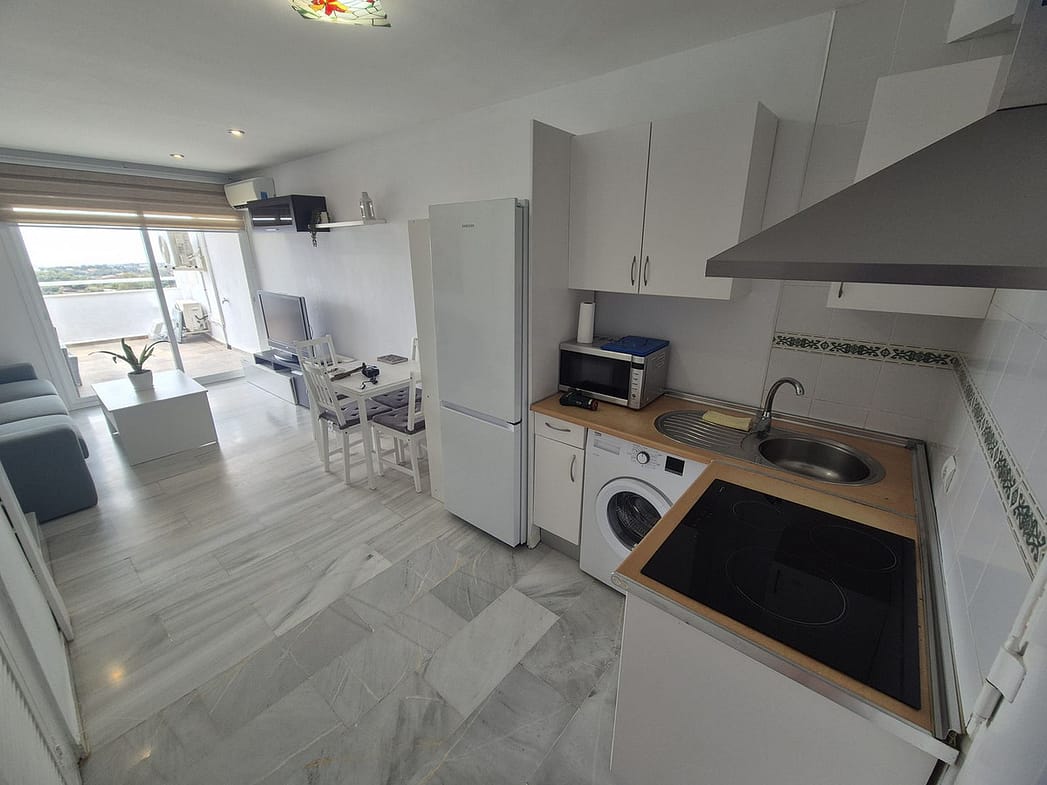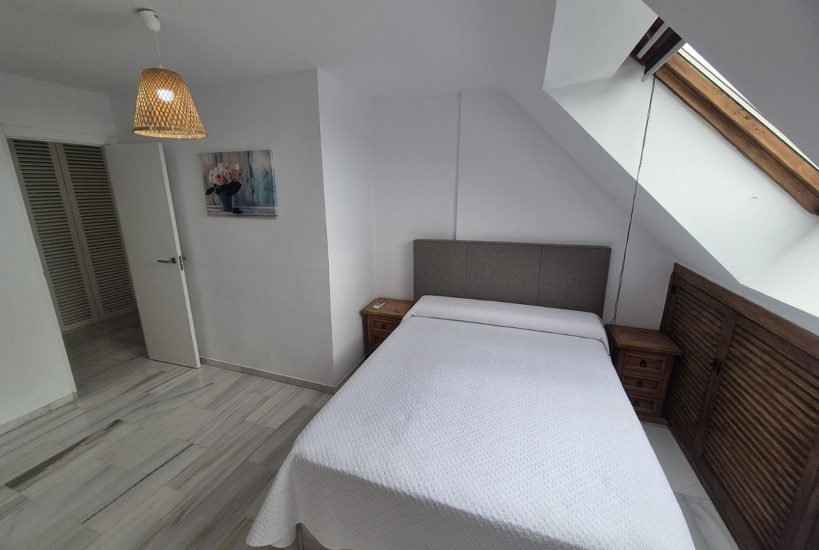Spectacular panoramic views of the sea, Africa, and mountains are ideal for nature lovers, tranquility, and stargazing from a large private terrace in a top penthouse, offering maximum privacy. The duplex penthouse is perfect for holidays on the Costa del Sol, just 20 minutes by car from Puerto Banús, 10 minutes from Estepona and Benahavis, 5 minutes from the Laguna Village shopping center, Aldi, Buguer King, and a gas station, and 40 minutes from the airport. Excellent for buying your first home, living there for a few years, and then selling to increase its value, due to the area's high growth potential. It's a magnificent investment due to the high demand for small apartment rentals among foreign tourists and local workers without children. Low maintenance costs for community fees and property taxes.