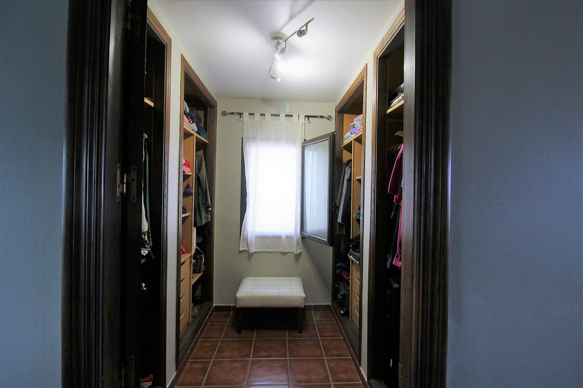 On the upper floor we find two bedrooms, one of them with a built-in dressing room and the main room with access to a south-facing terrace. We found a bathroom with Jacuzzi and an extra dressing room.