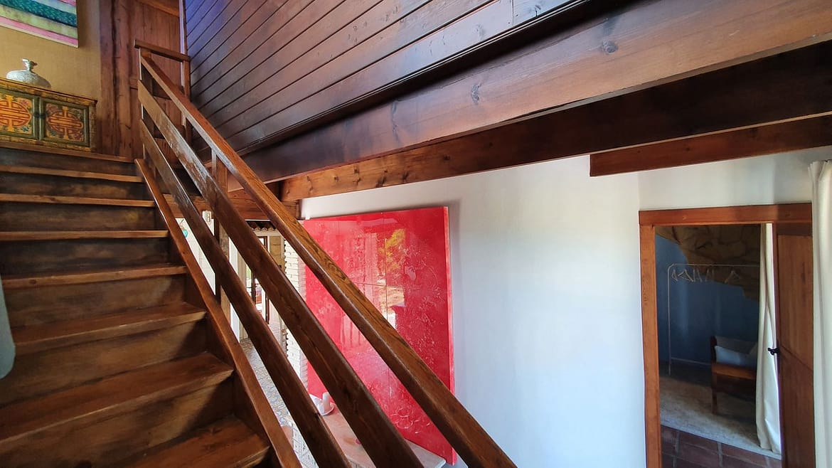 Furthermore, the property includes two independent apartments. One of them comprises two bedrooms and one bathroom, while the other has three bedrooms and two bathrooms.