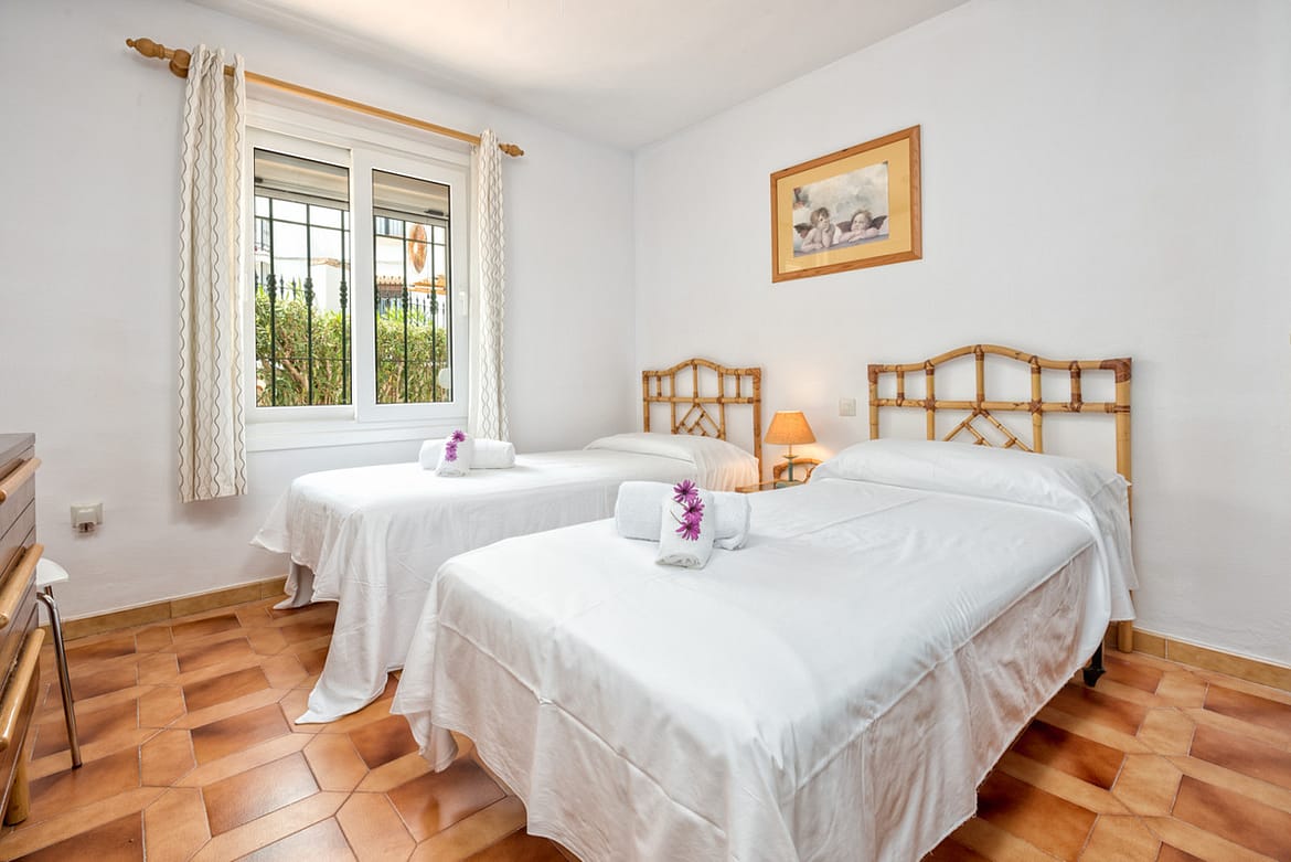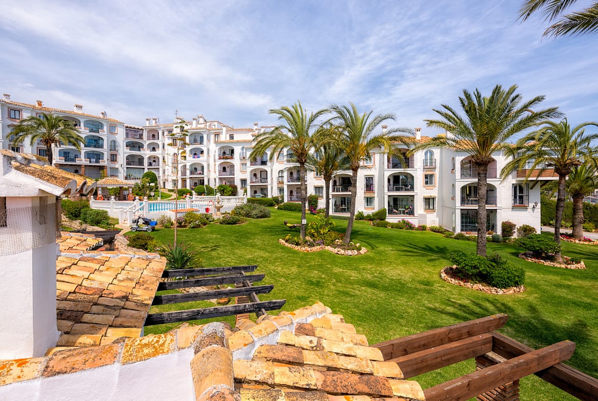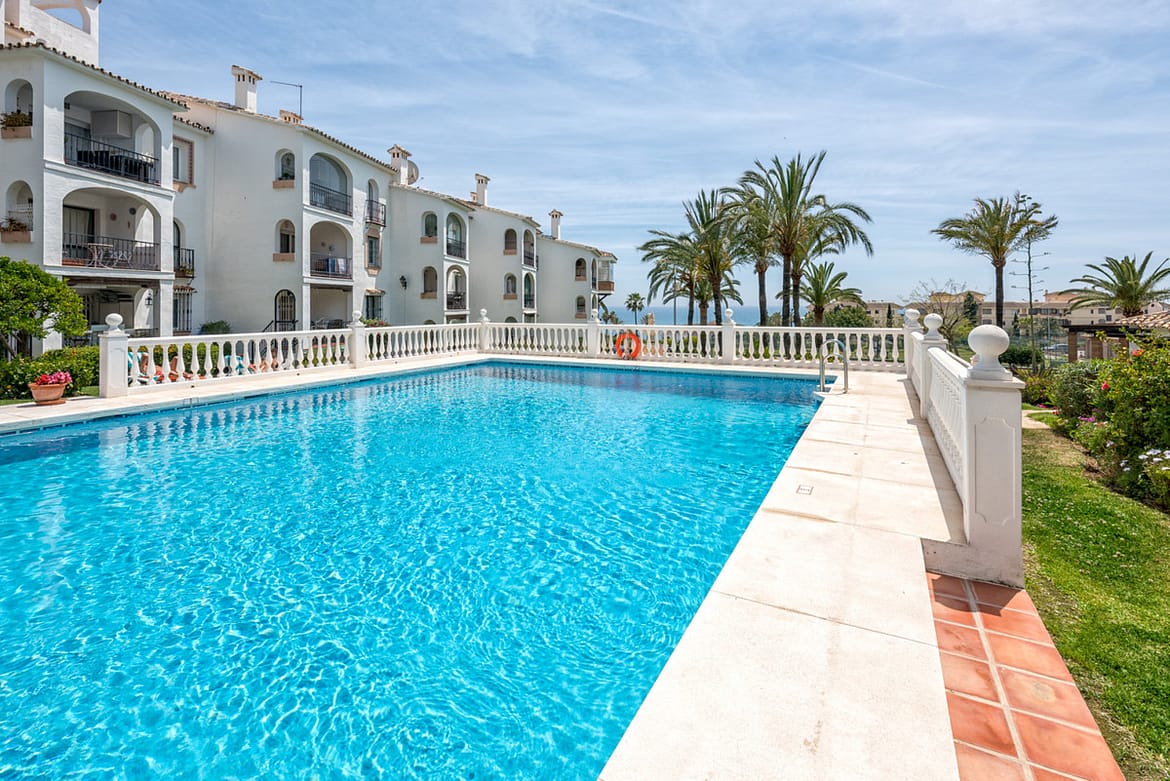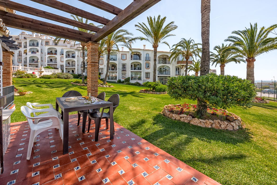 Set in a pretty complex in Riviera Del Sol with a beautiful pool, tennis court and children’s play area. All accommodation is arranged on one level with direct access from the terrace to the manicured gardens and pool area (there are a few steps to the pool).