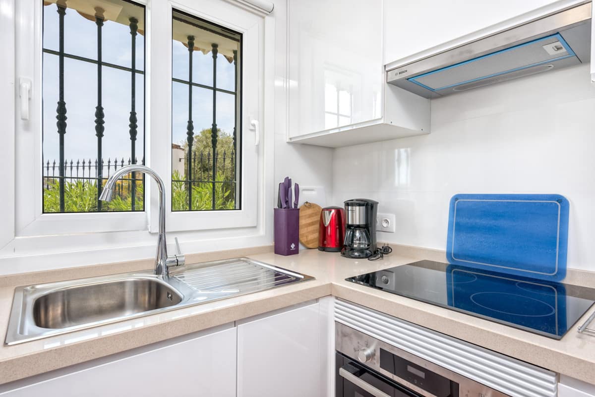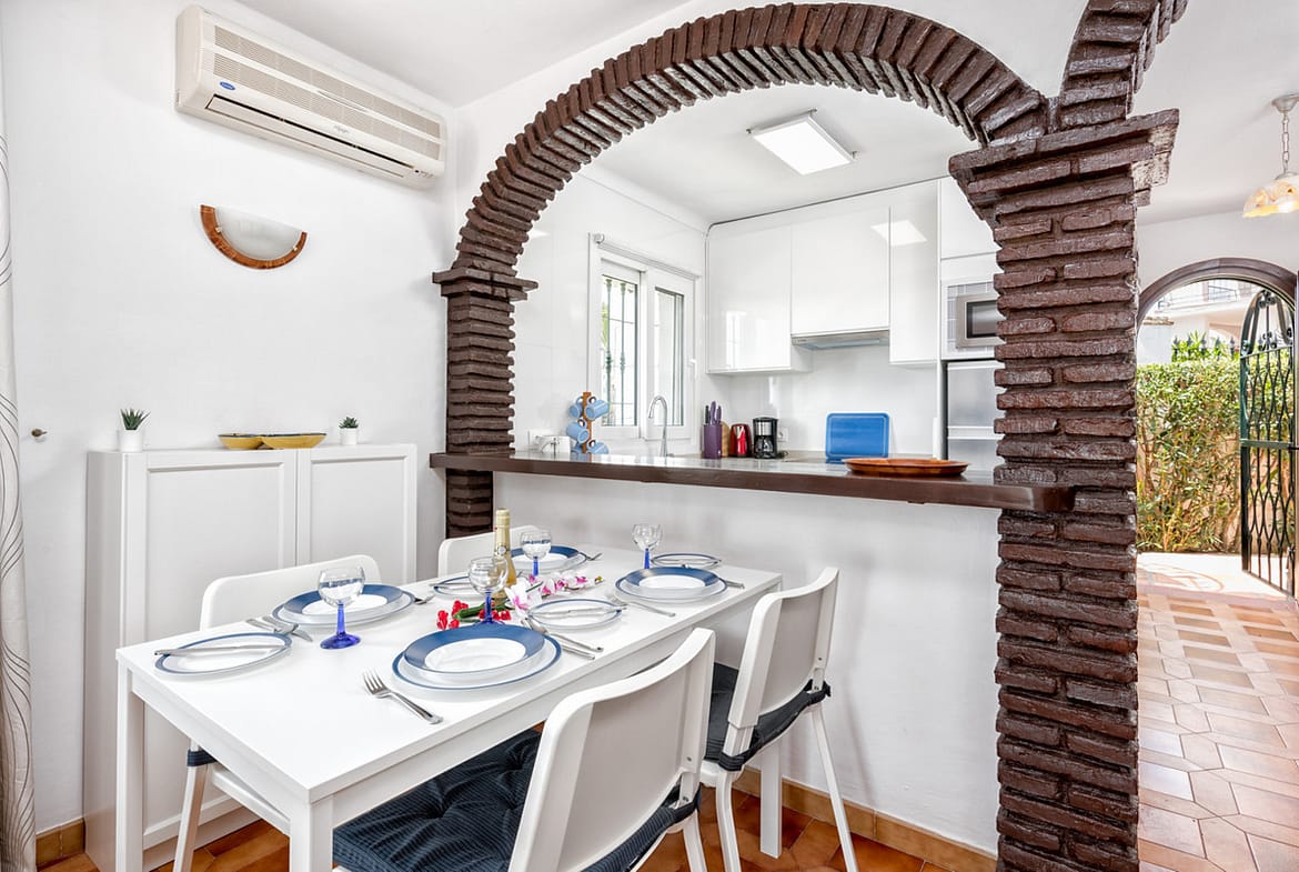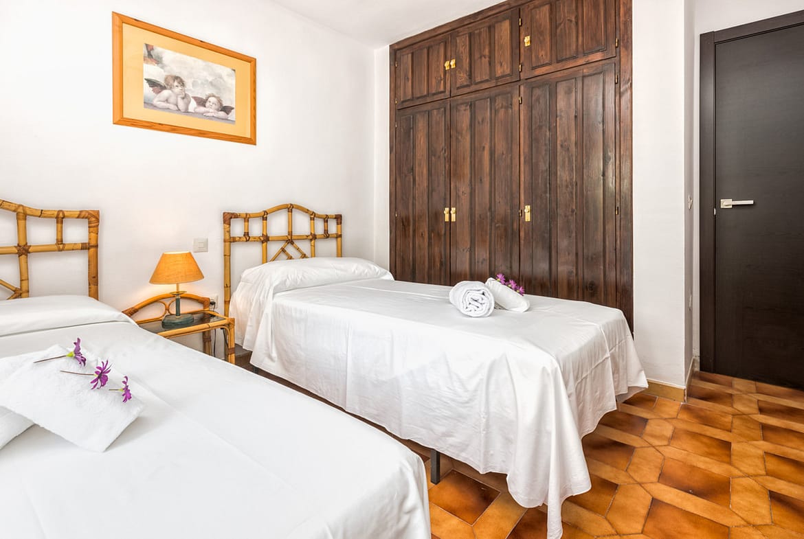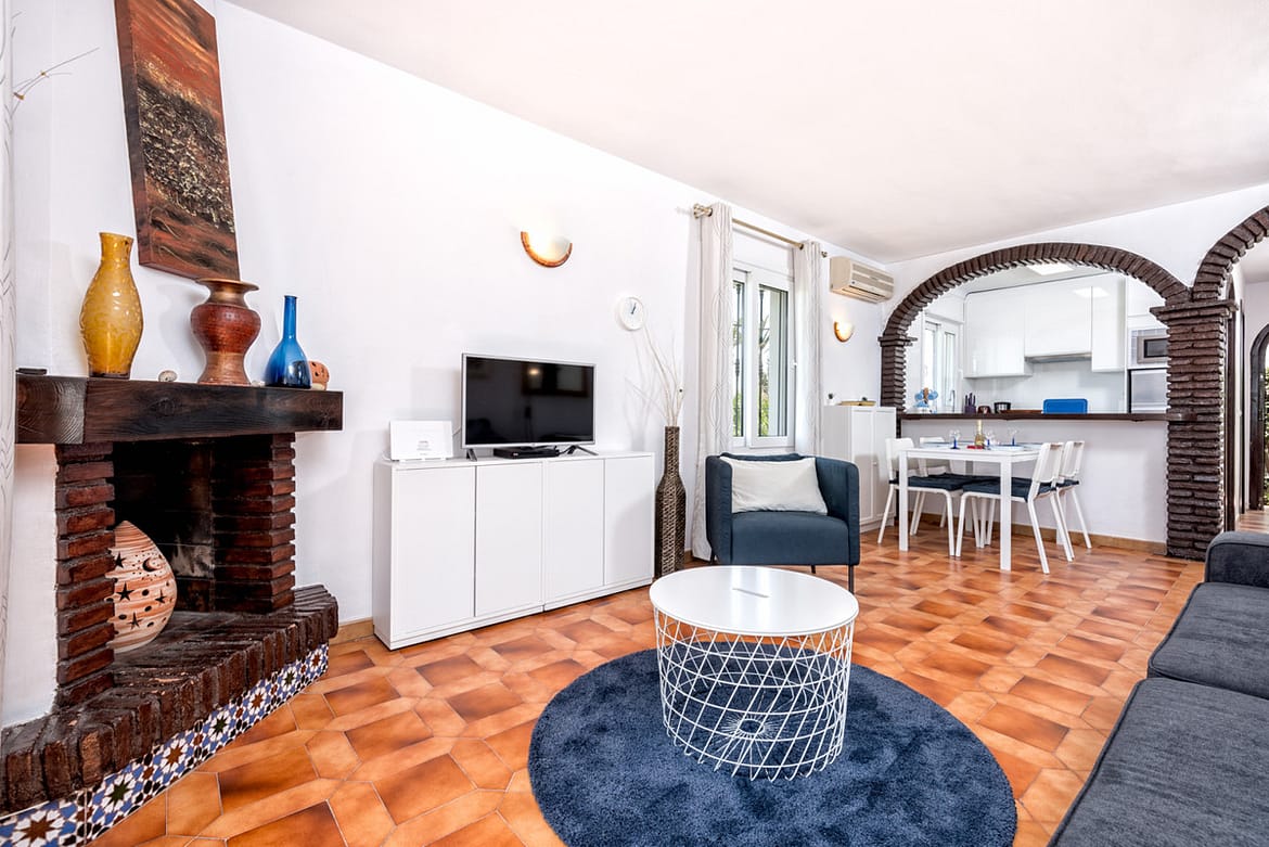 Set in a pretty complex in Riviera Del Sol with a beautiful pool, tennis court and children’s play area. All accommodation is arranged on one level with direct access from the terrace to the manicured gardens and pool area (there are a few steps to the pool).