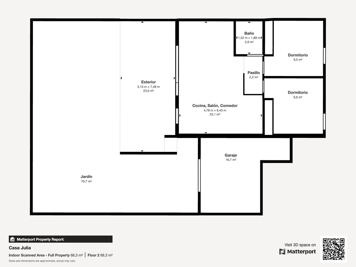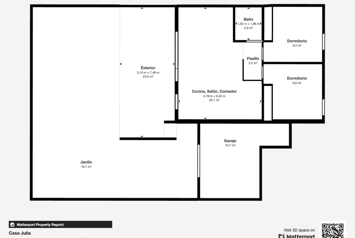 Additionally, the house offers two private parking spaces: one in a covered garage and another outdoors within the property.