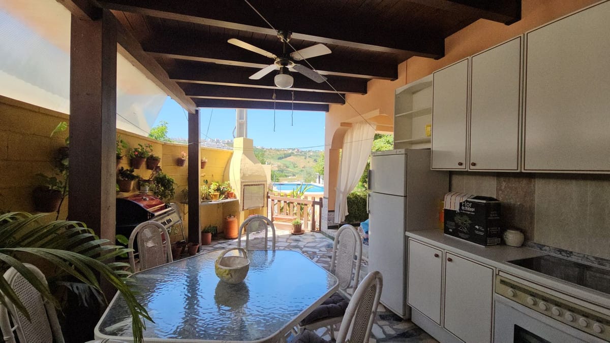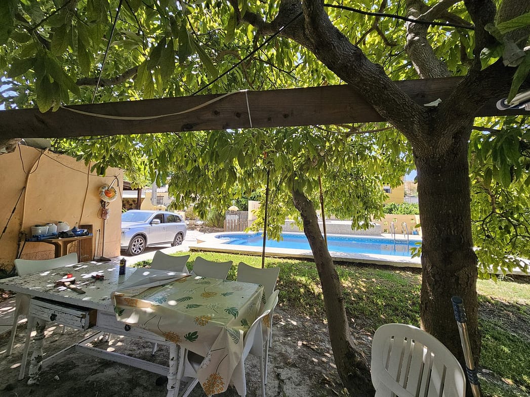 A wonderful country house-style home, but like a luxury detached house, this house consists of two bedrooms and a spacious bathroom with a shower. Then there's an inside kitchen, a cozy, comfortable living-dining room, and everything in good condition. But this property is clearly for those who prefer to live life outdoors, under the stars, close to the beach, and eating fruit and vegetables from their own land. Outside the house, there's a large veranda with plenty of space for the whole family, an outdoor fireplace, an outdoor kitchen, and a super-nice pool, with plenty of shade from the mature plants and trees that some have been caring for for 40 years.