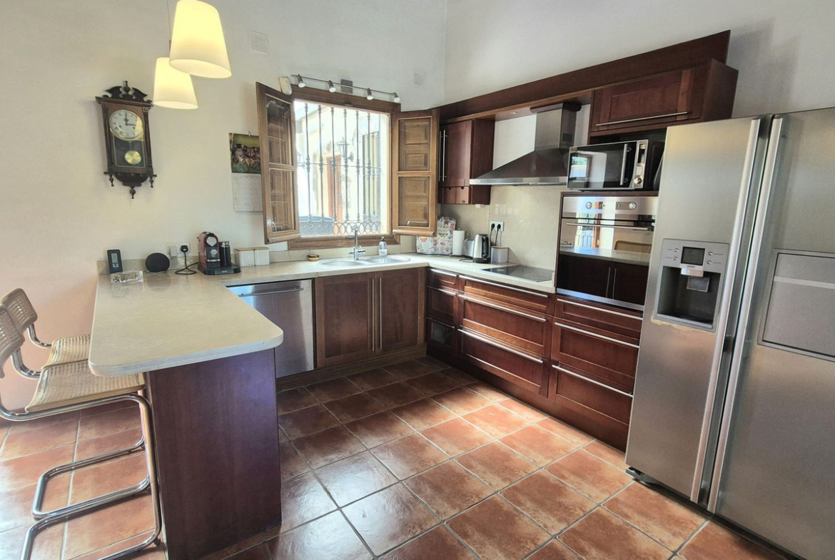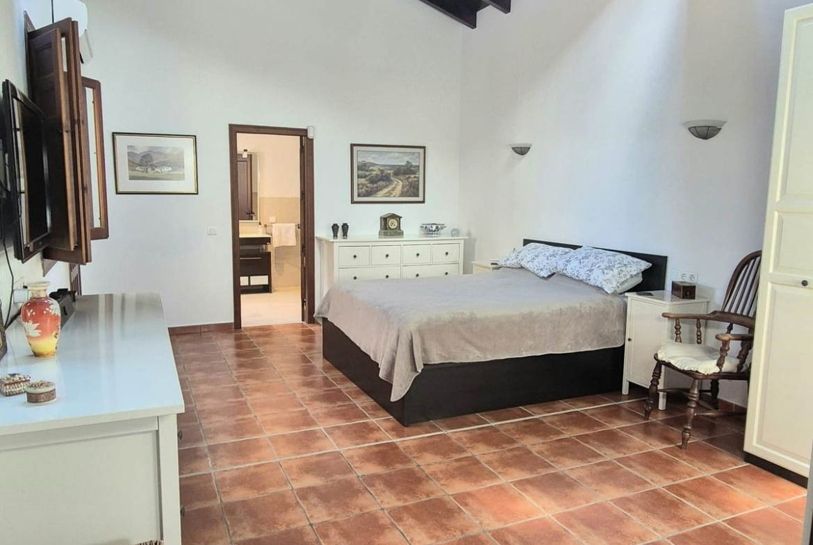 As you enter the property through the electric gates you have a stoned road that leads to the finca, with ample car parking, 2 car carport / garage, at the front of the property there is a nice covered terrace to enjoy alfresco dining. Entering the finca into the open living room / kitchen, you have high ceilings with wood beams, the kitchen is fully fitted and in prestine condition, and the living room has a wood burner and pellet stove. From here is also access to the back part of the house where there is a nice courtyard and you can combine being outside and in as well. From the living room you have a hallway that leads you to the 2nd double bedroom, guest full bathroom and large master suite with a big ensuite bathroom, this is a huge room with lots of potential for making it even into 2 bedrooms, you have skylights, a window and door that accesses the same back courtyard, nice fitted wardrobes. The master bathroom has a large soaker tub and free standing separate shower.