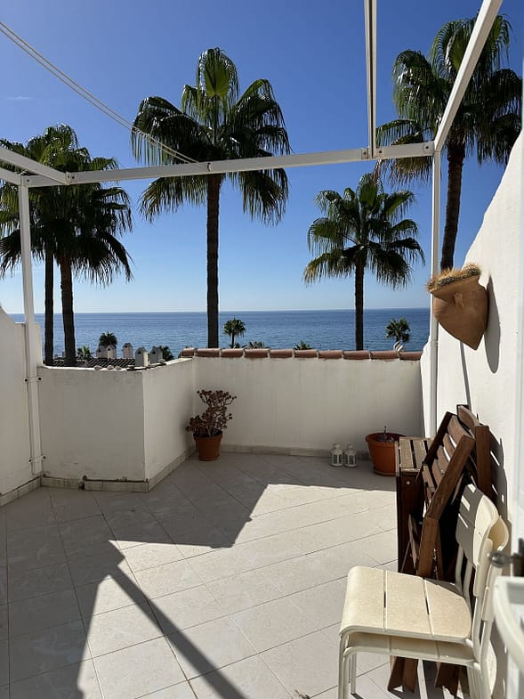 This bright duplex apartment enjoys stunning sea views and is located only 100 metres from the beach in El Faro, within walking distance to shops, cafés and restaurants.
