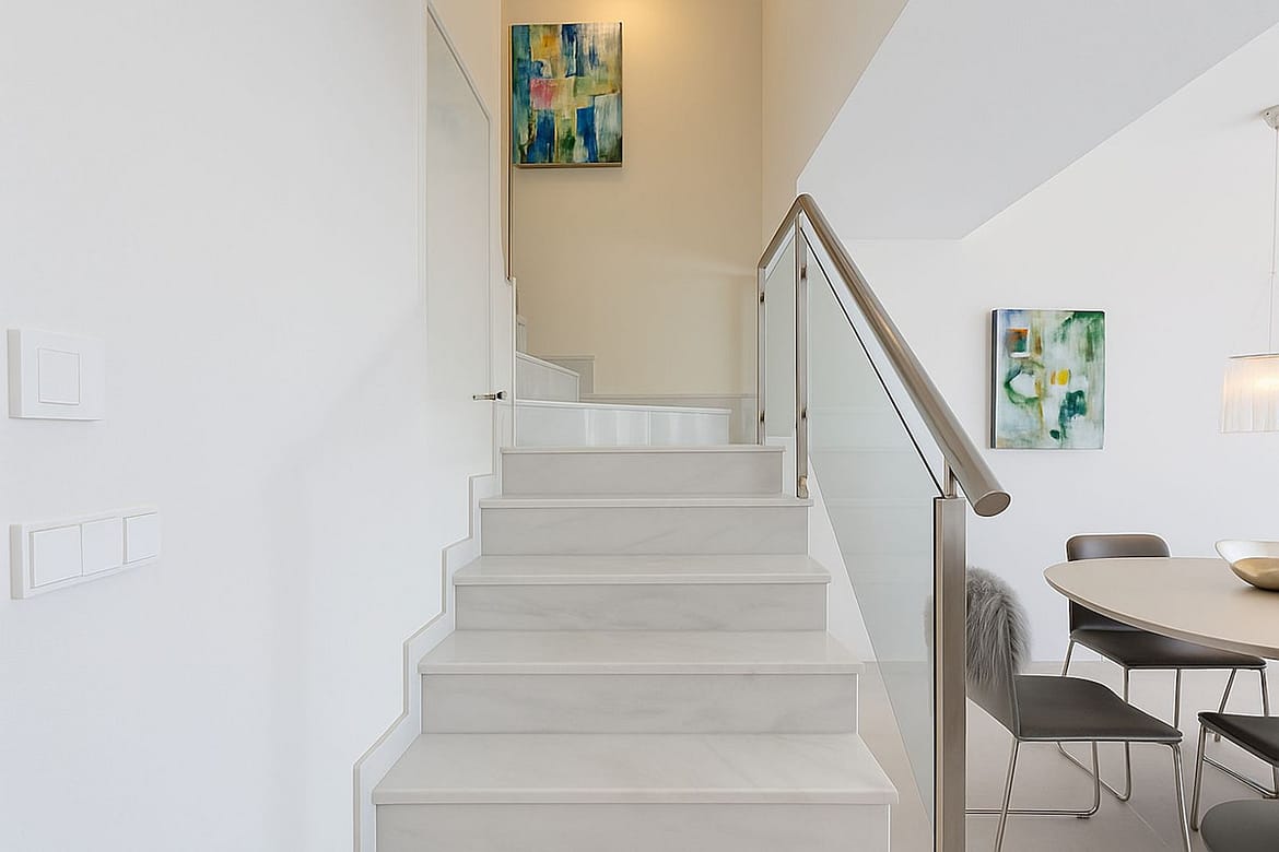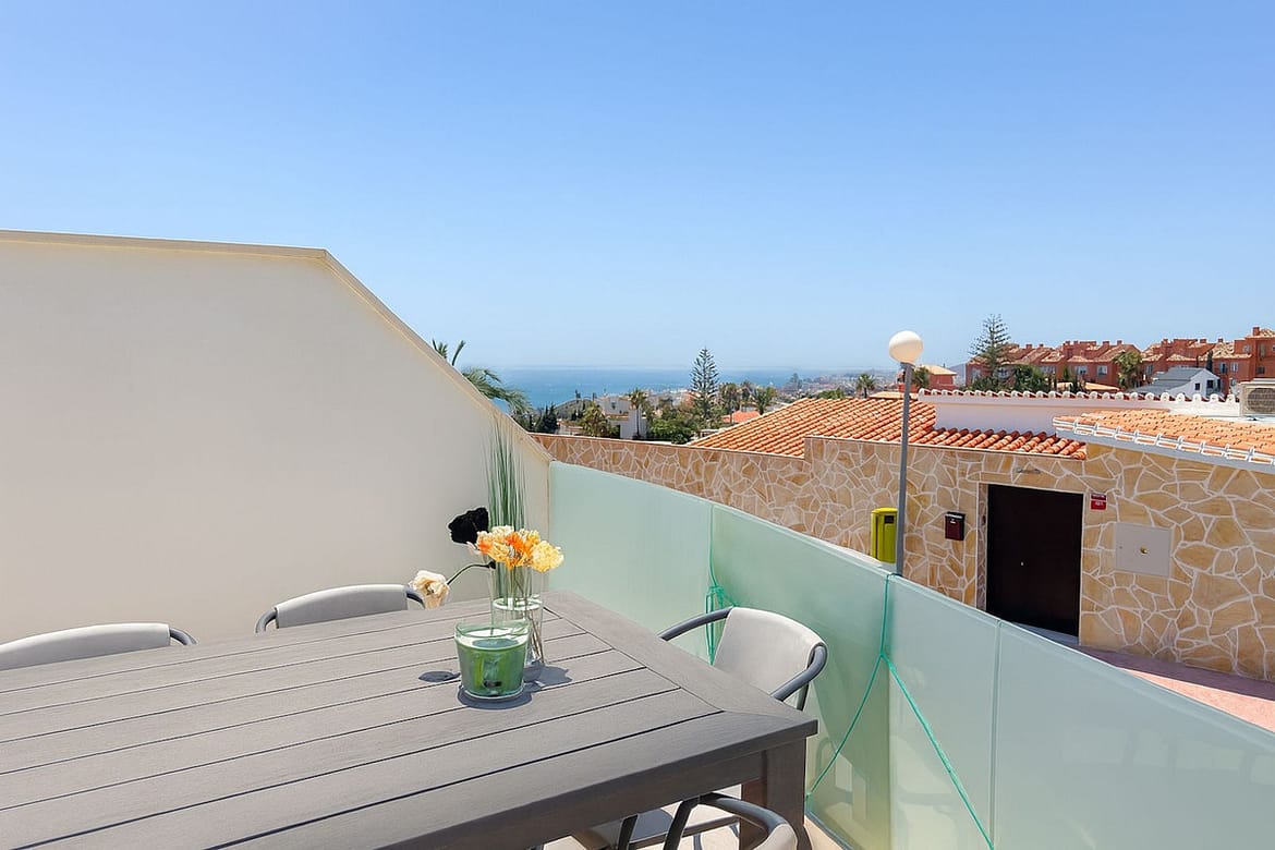 The property, is south-west facing and offers two fantastic terraces, with plenty of opportunities for relaxation and enjoying the sun. One on the 1st floor 11.5 m² with a panoramic view over the Mediterranean Sea and Fuengirola town, on the horizon you can see the mountain peaks from Morocco. On the same floor, you will find two bedrooms and a bathroom, from the master bedroom there is access to the terrace.