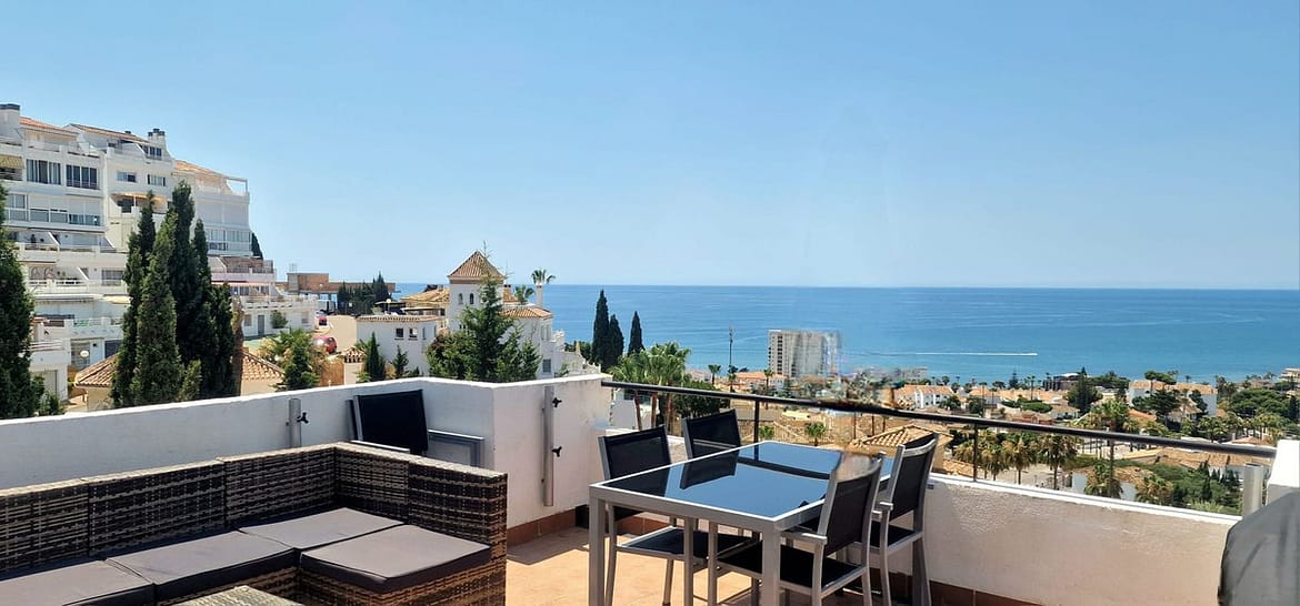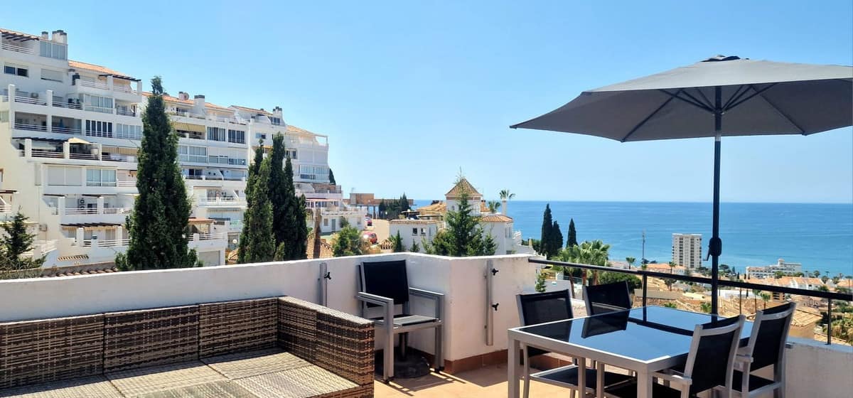 Located in Riviera de Mijas, just a 15-minute walk to the beach, the complex is perched on a hill, offering breathtaking views both day and night, with the sea glimmering and the hills illuminated by the night sky.