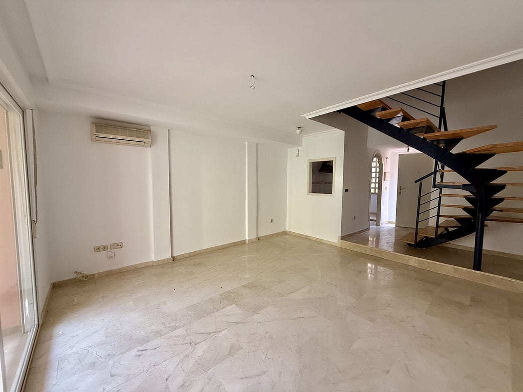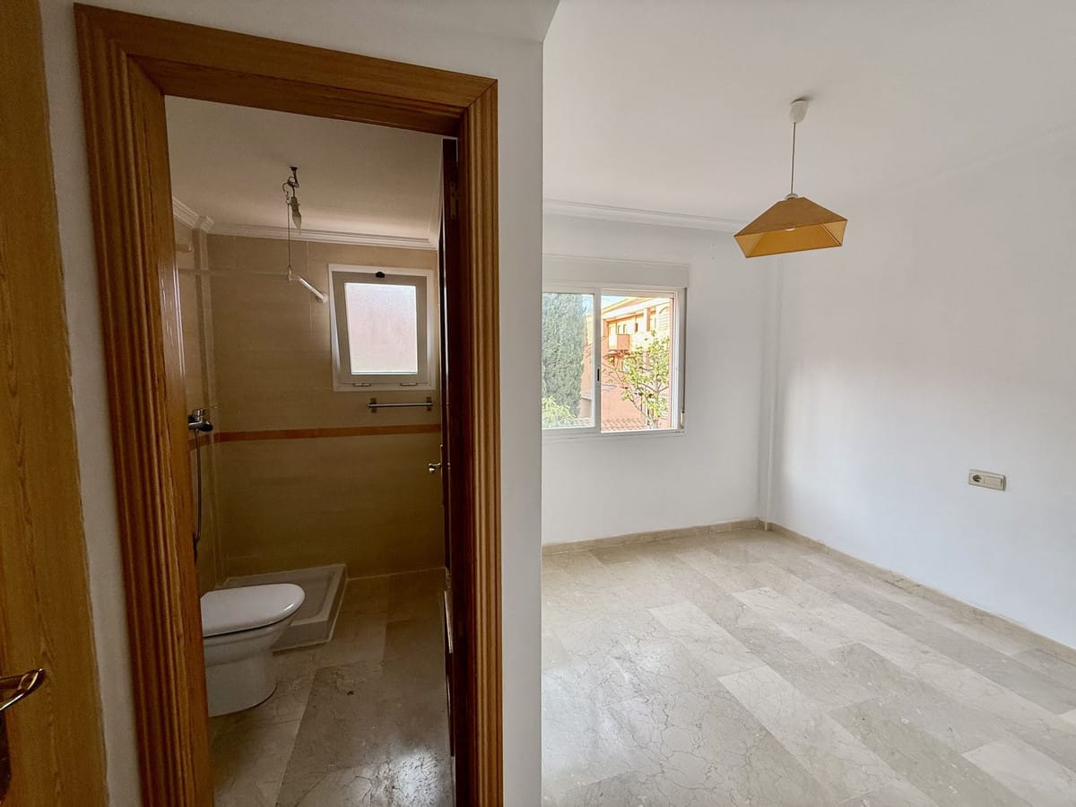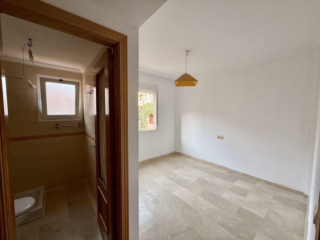 Lower duplex in Riviera del Sol with a floor area of 90 m², distributed over 45 m² on the ground floor and 45 m² on the upper floor. The ground floor has a living-dining room with access to a private garden, a toilet, a laundry room, and an unfitted separate kitchen, with the option of integrating it into the living room. Upstairs there are two bedrooms with fitted wardrobes, two full bathrooms with windows (one with a bathtub and the other with a shower), an additional fitted wardrobe in the hallway, and a terrace with side views.