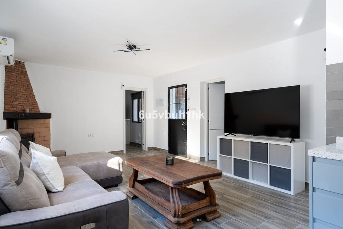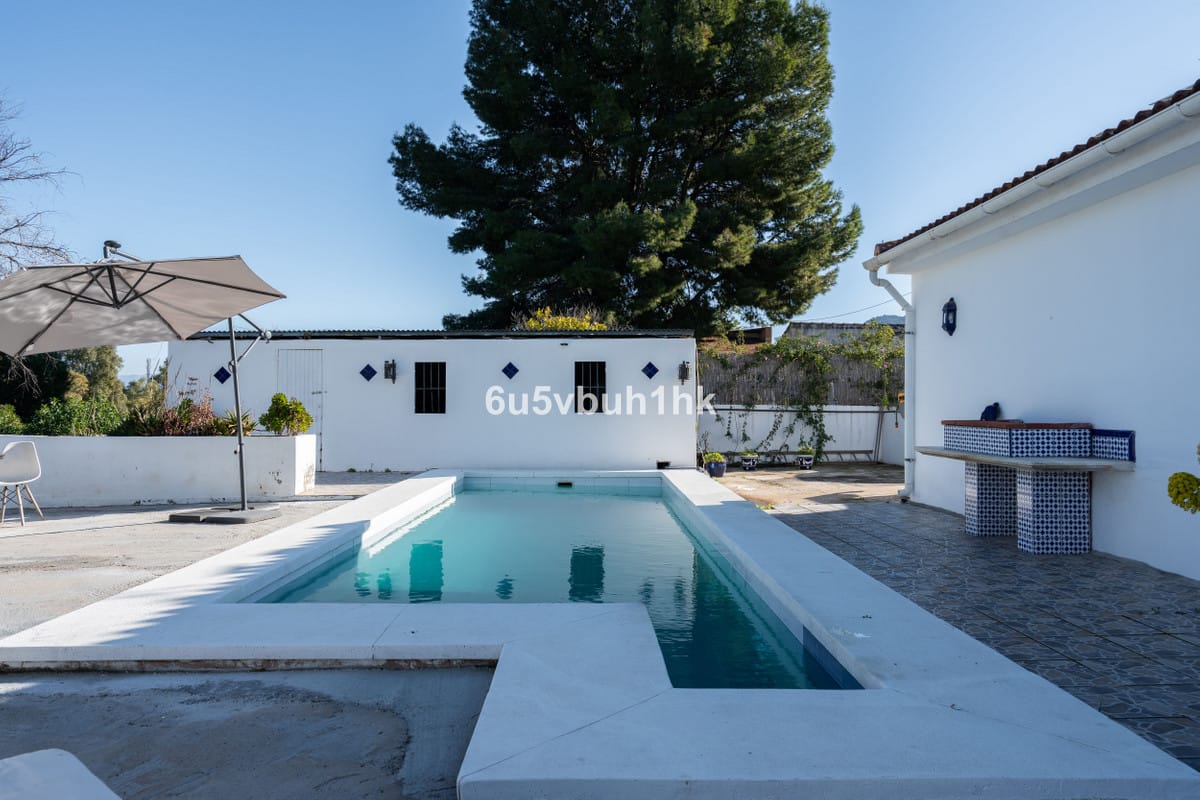 Nestled in the Cártama countryside but conveniently close to town, this single floor finca offers the best of both worlds, tranquil rural living with easy access to modern amenities. This two bedroom home has recently been renovated with new flooring throughout, new air conditioning/heating units, new interior doors, a new open plan kitchen and the electrics have been upgraded. At the entrance to the house is a covered terrace which is partly enclosed and leads onto the pool area with a sunny patio which overlooks a large garden filled with tropical plants and fruit trees. The plot has two access gates, there is ample outside parking by the house or a large two car garage, which could easily be made into a small apartment or a third bedroom with an ensuite bathroom if extra living space is needed. From its elevated position this wonderful finca has amazing views of the surrounding countryside and is less than 5 minutes from the town of Cártama and with quick access to the main road is just 20 minutes from Malaga airport.