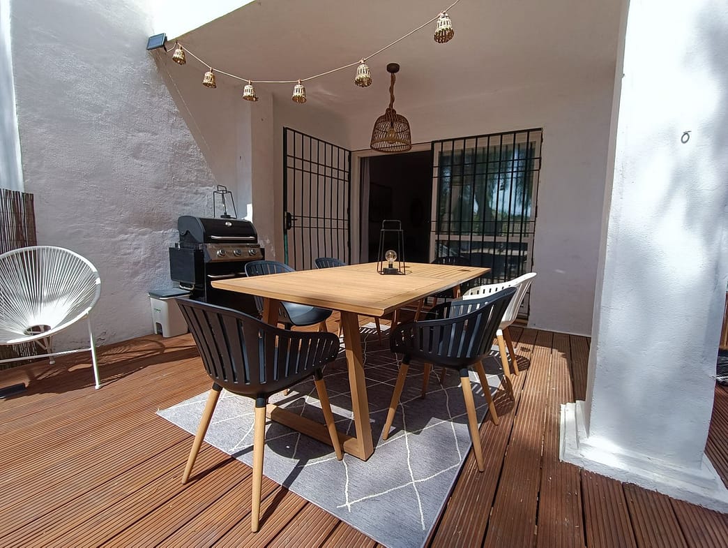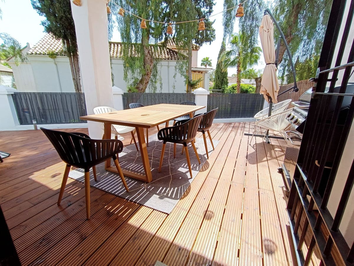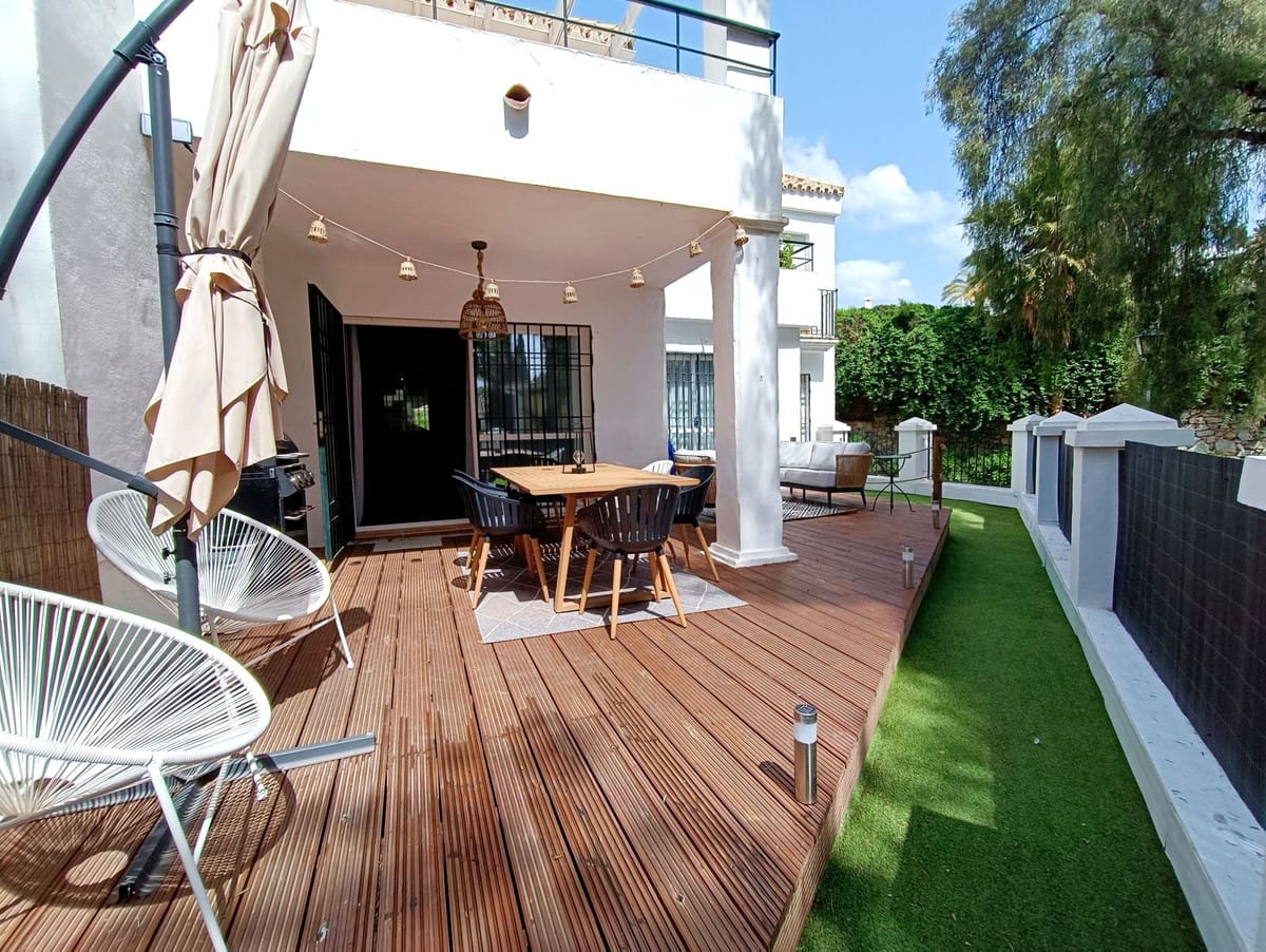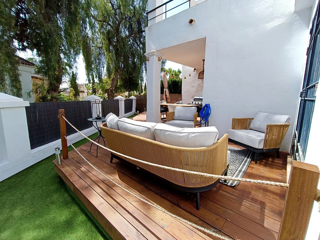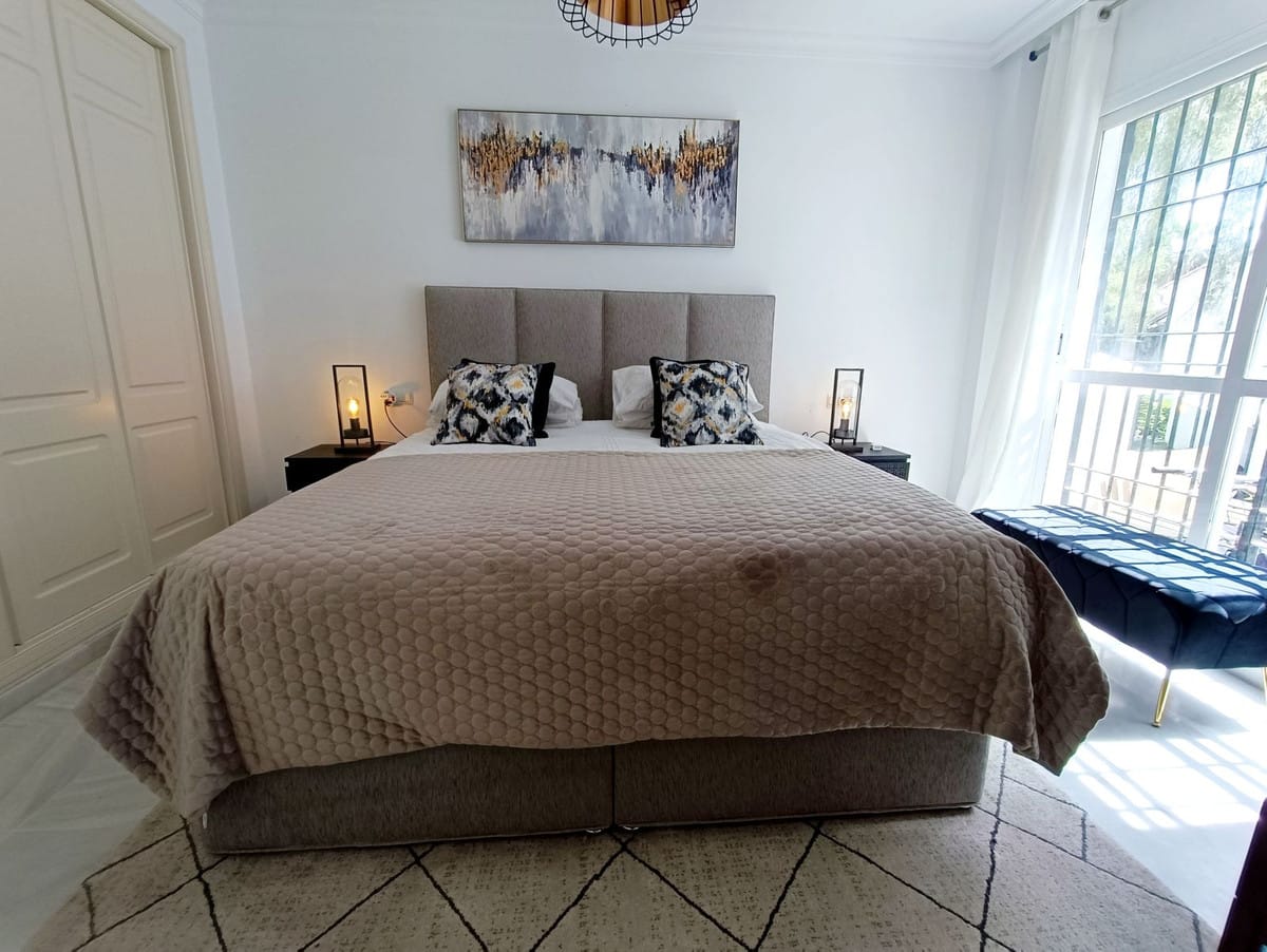 This cosy 2 bedroom 2 bathroom ground floor apartment is in a secure gated urbanization in the heart of Nueva Andalucia. The property is equipped with everything you could need for your holiday on the Costa del Sol.
