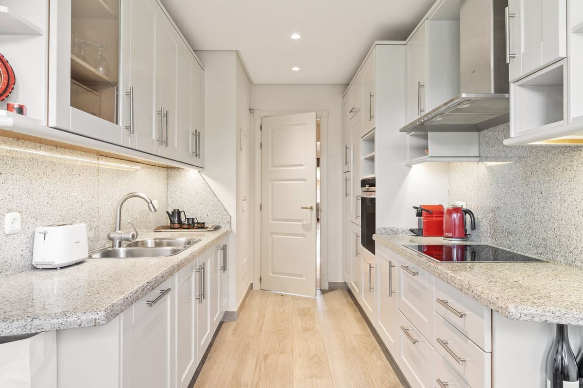 New in our offer. Apartment with large terrace and private garden located 5 minutes walk from the sea. It has 2 large bedrooms and one-suite bathrooms. Each of them is complemented by a private exit to the terrace. It is possible to add an extra bed for an additional person. The master bedroom opens to the terrace with garden, the smaller bedroom has a small terrace with a view of the mountains. The apartment has a large spacious living room with a corner sofa where you can relax with your family. The kitchen is fully equipped with all necessary household appliances. On the terrace there is a large table for 6 and a lounge set. There will also be large comfortable sun loungers on which you can enjoy the wonderful Spanish sun. On the estate there are 2 year-round swimming pools, one of which is heated all year round and the water temperature in January is 28C. We also have one parking space in the underground garage. Apartment available only in the summer. Perfect for you and your family !