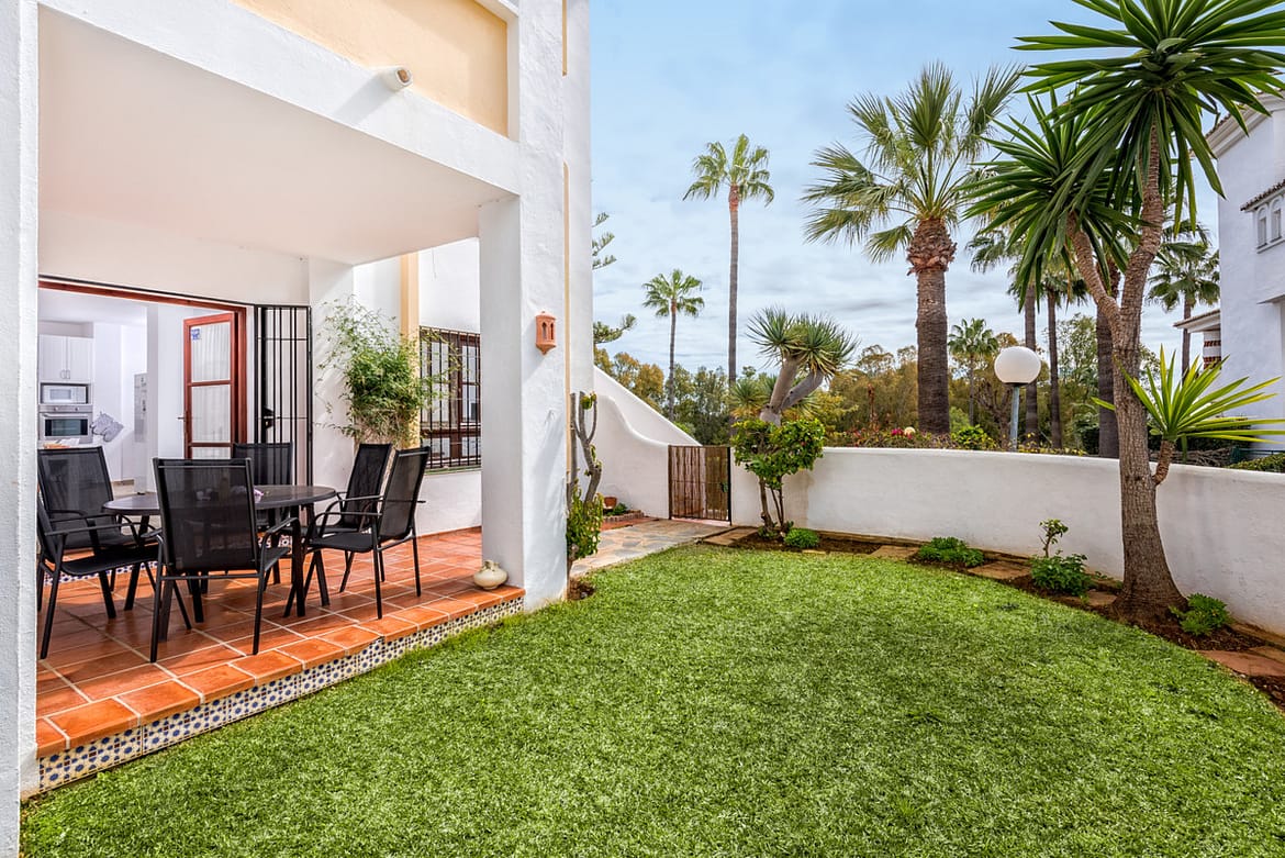 Lovely south facing 2 bedroom, 2 bathroom ground floor apartment with private garden. This newly refurbished two bedroom apartment is situated in the popular Jardines de Calahonda area on the Caserio complex. This bright spacious apartment is in an excellent location for either a family holiday or a couples retreat. Situated within 1km walking distance to the beach and all amenities, this apartment is perfect for those who do not wish to hire a car.