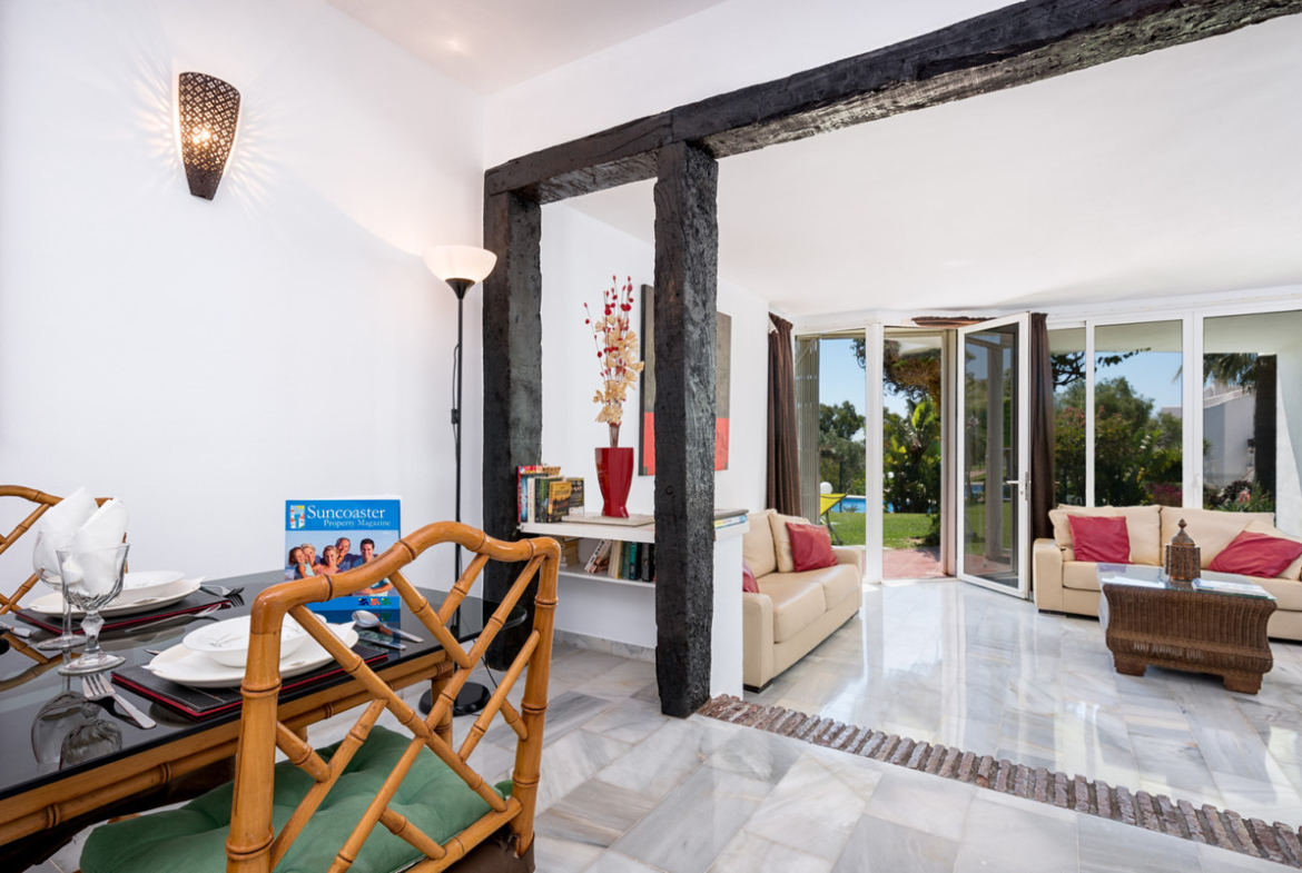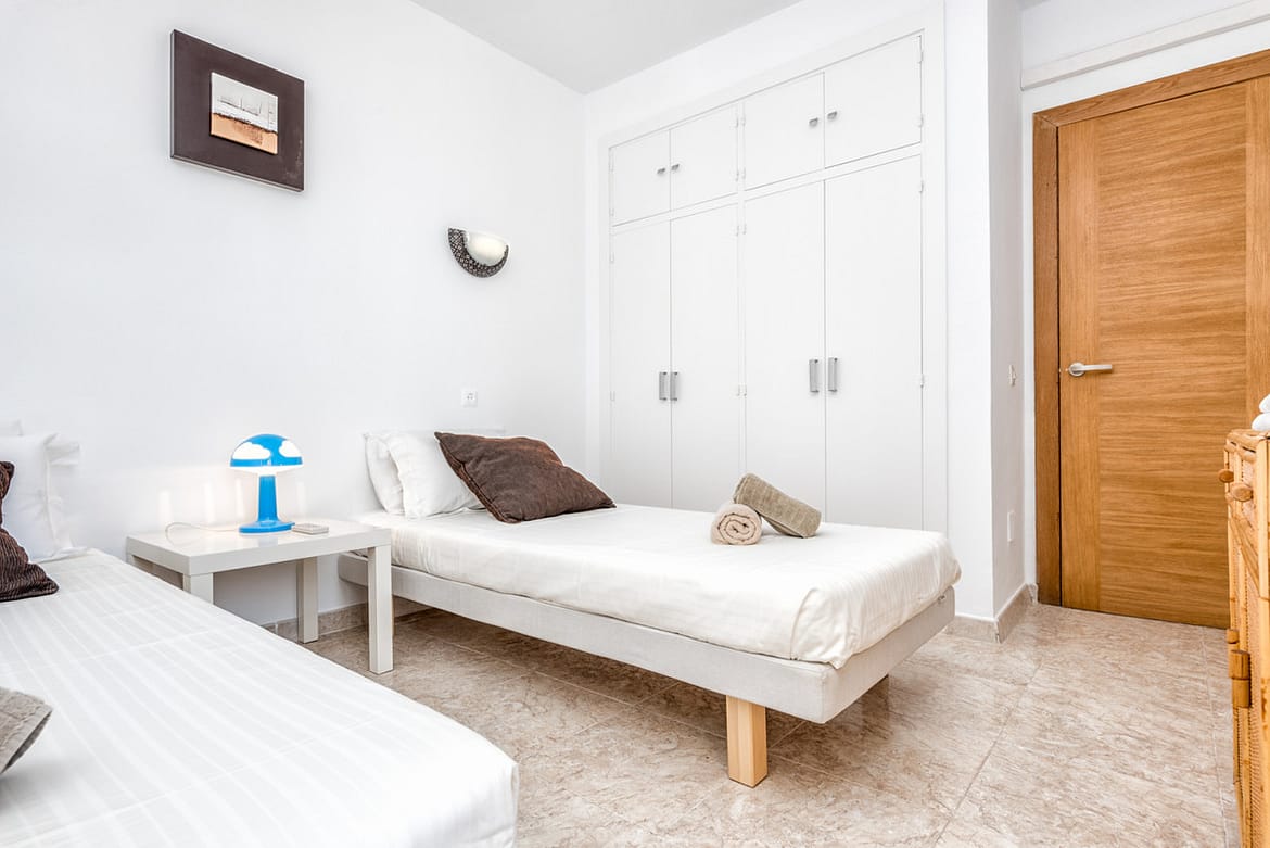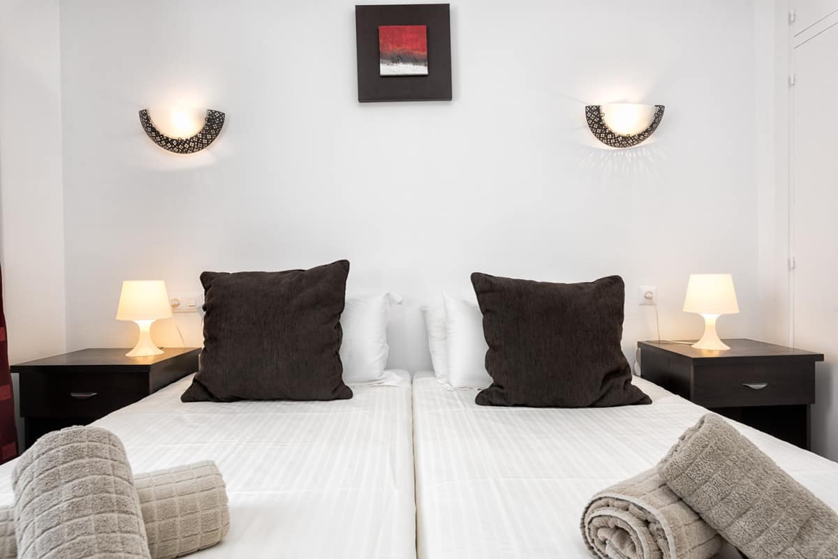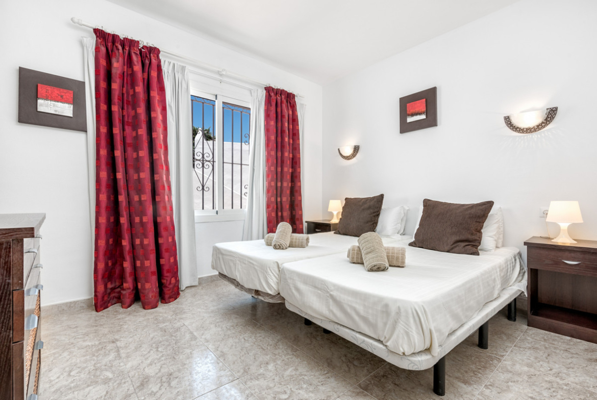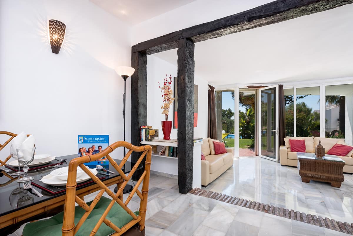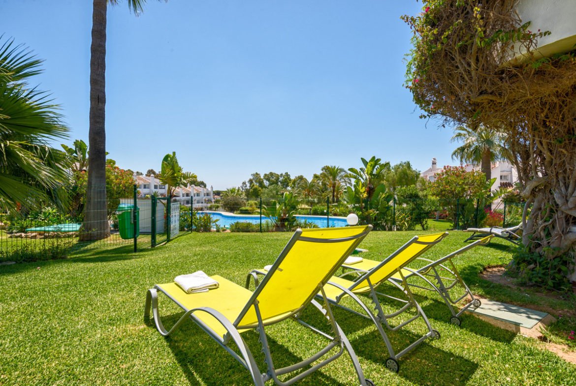 2 bedroom, 2 bathroom ground floor apartment. Jardines de Calahonda Phase 3 offers possibly some of the best landscaped tropical gardens in Calahonda. Choose between the two beautiful pools on the complex, one with a children’s pool for the younger “water babies”. Or why not use both! Situated in the lower western border of Calahonda amidst tranquil settings yet within 10 minutes walk of the beach, shops, bars, restaurants and all facilities which makes Jardines de Calahonda an ideal holiday destination for families, couples and groups. Jardines has its own local neighbourhood on-site bar, handy for enjoying a refreshing drink, a light snack or an ice cream. This 2 bedroom, 2 bathroom apartment has been refurbished creating modern bathrooms and kitchen. There is complementary WIFI and internet enabled TV and Air conditioning throughout. Perfect for families. A cot and highchair are provided free of charge.