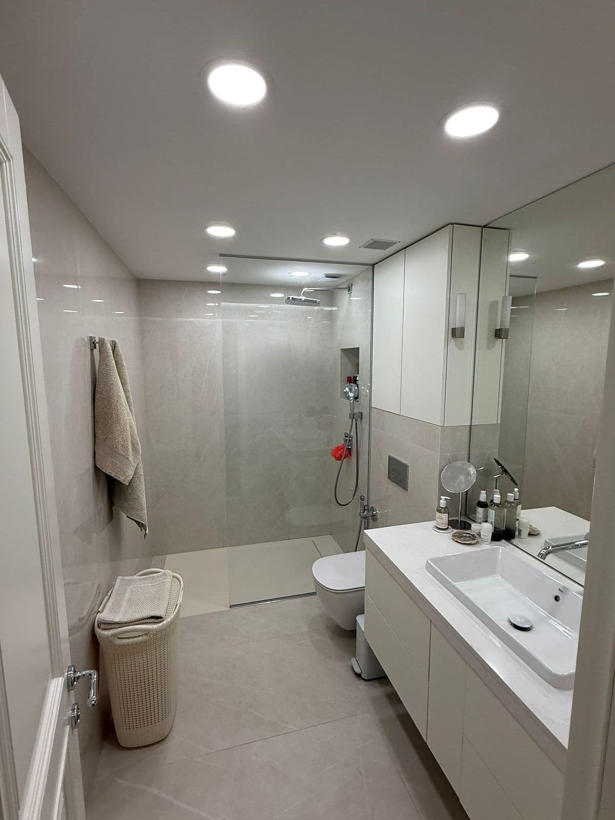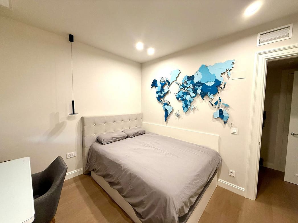 The interior is enhanced by high-quality parquet flooring, which adds warmth and uniformity to the space. An automated smart lighting system with sensors has been installed, providing convenience and a touch of modern luxury.
