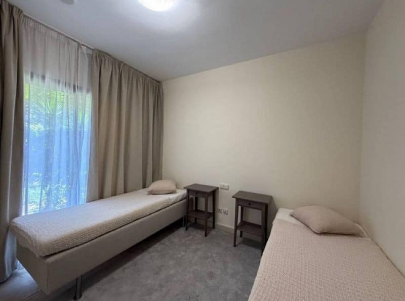 With 156 m² built and 28m² of private garden, this bright and well-distributed property features two spacious bedrooms with built-in wardrobes, two full bathrooms, a fully equipped kitchen, and a cozy living-dining room that opens onto a charming terrace with direct access to a private garden — ideal for families or for simply relaxing outdoors. The apartment is sold fully furnished and includes air conditioning, an underground parking space, and a storage room.
