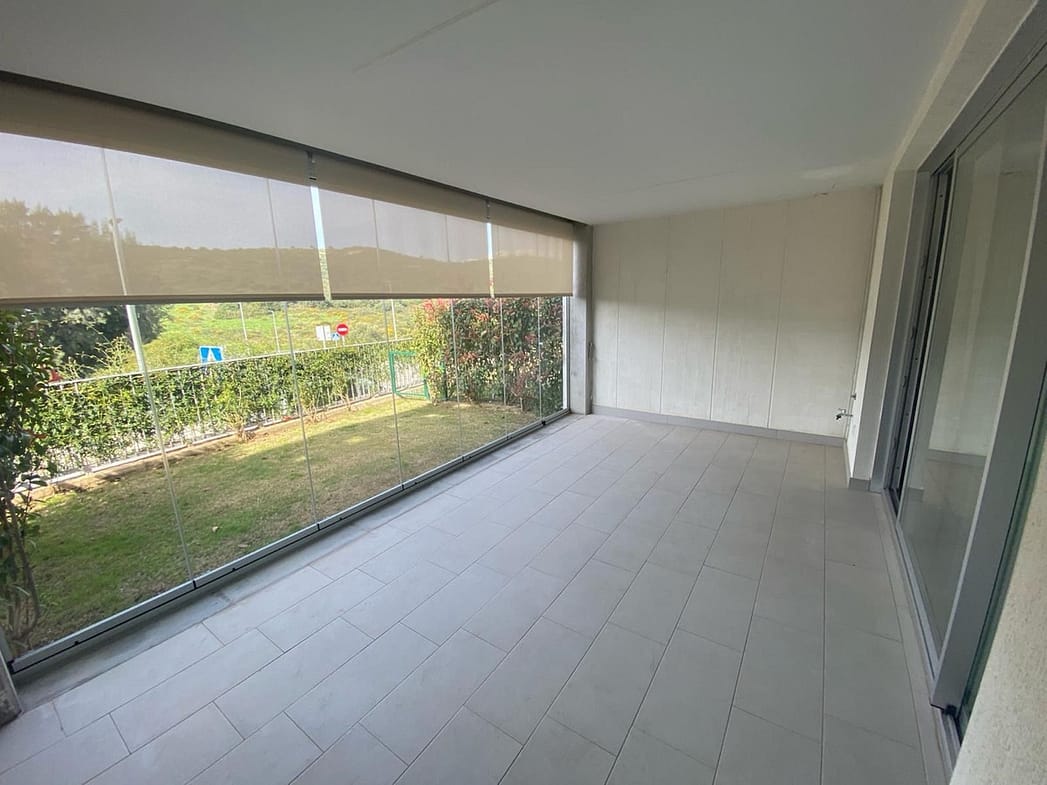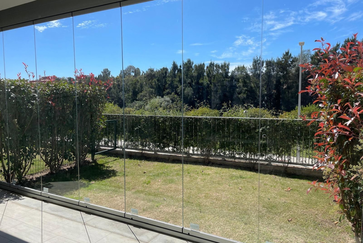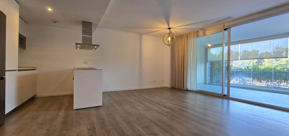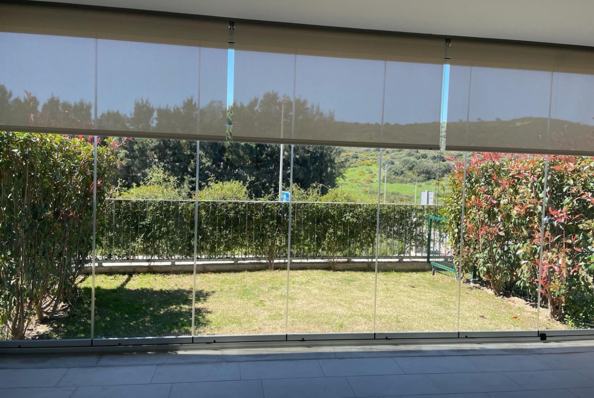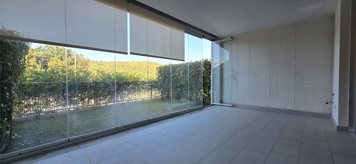 For long term rent starting September 2025. Apartment in gated community with communal swimming pool , 2 bedroom, 2 bathrooms, ground floor, terrace wih glass curtains, not furnished, fully equipped kitchen.