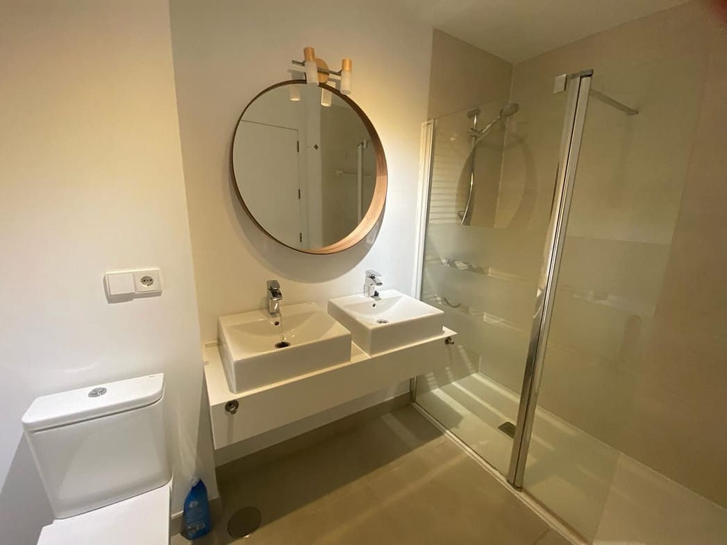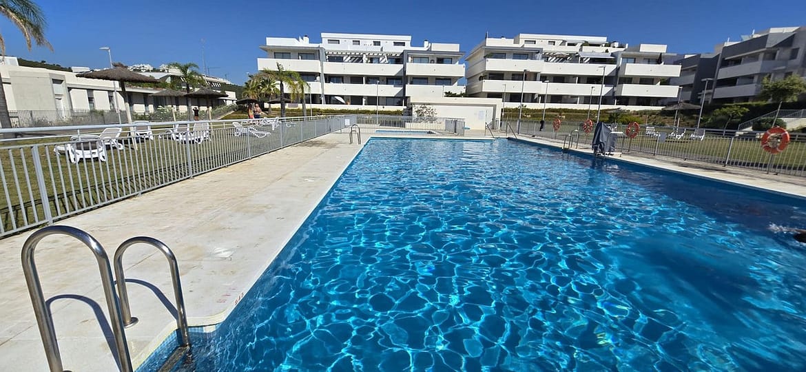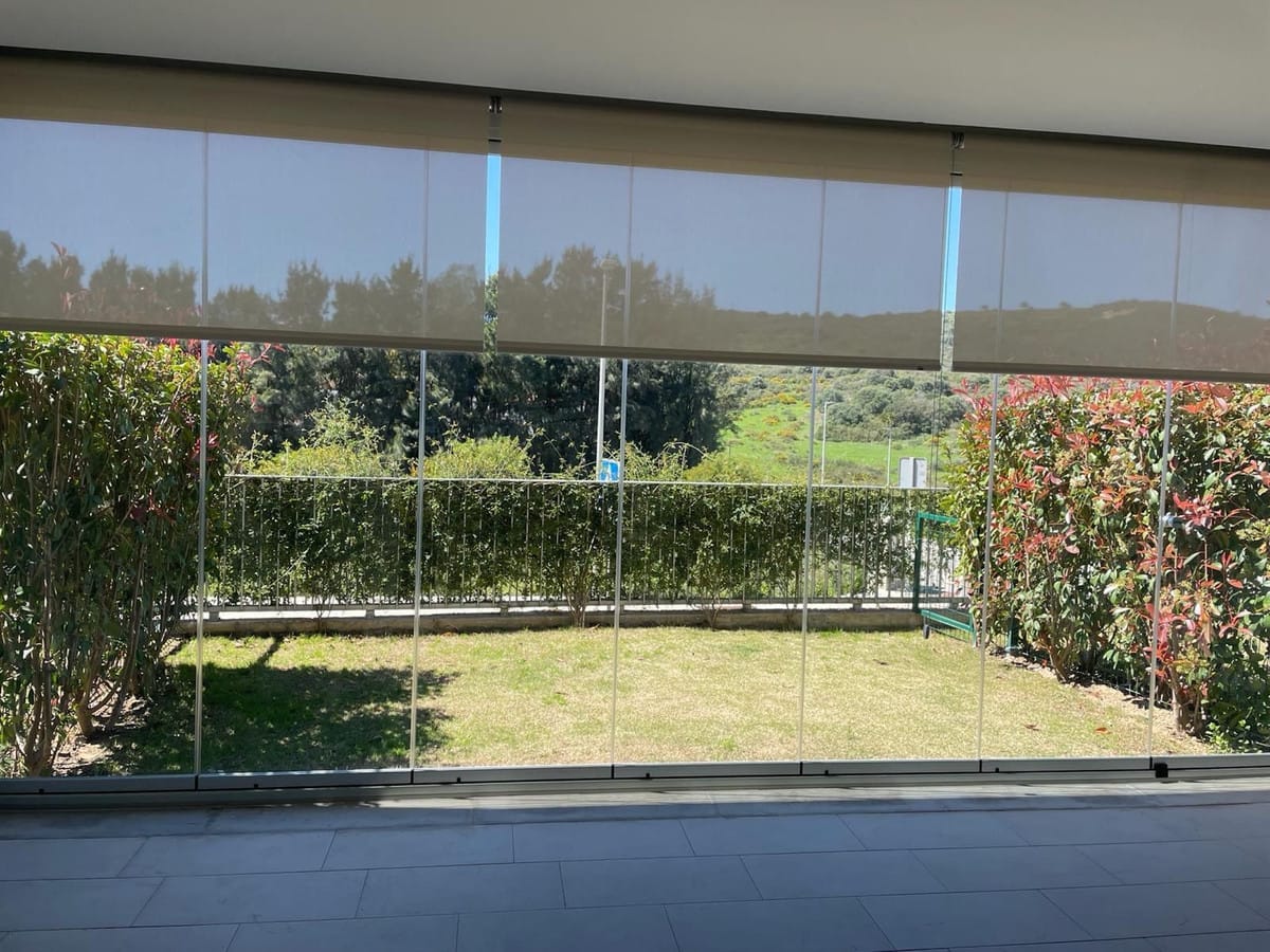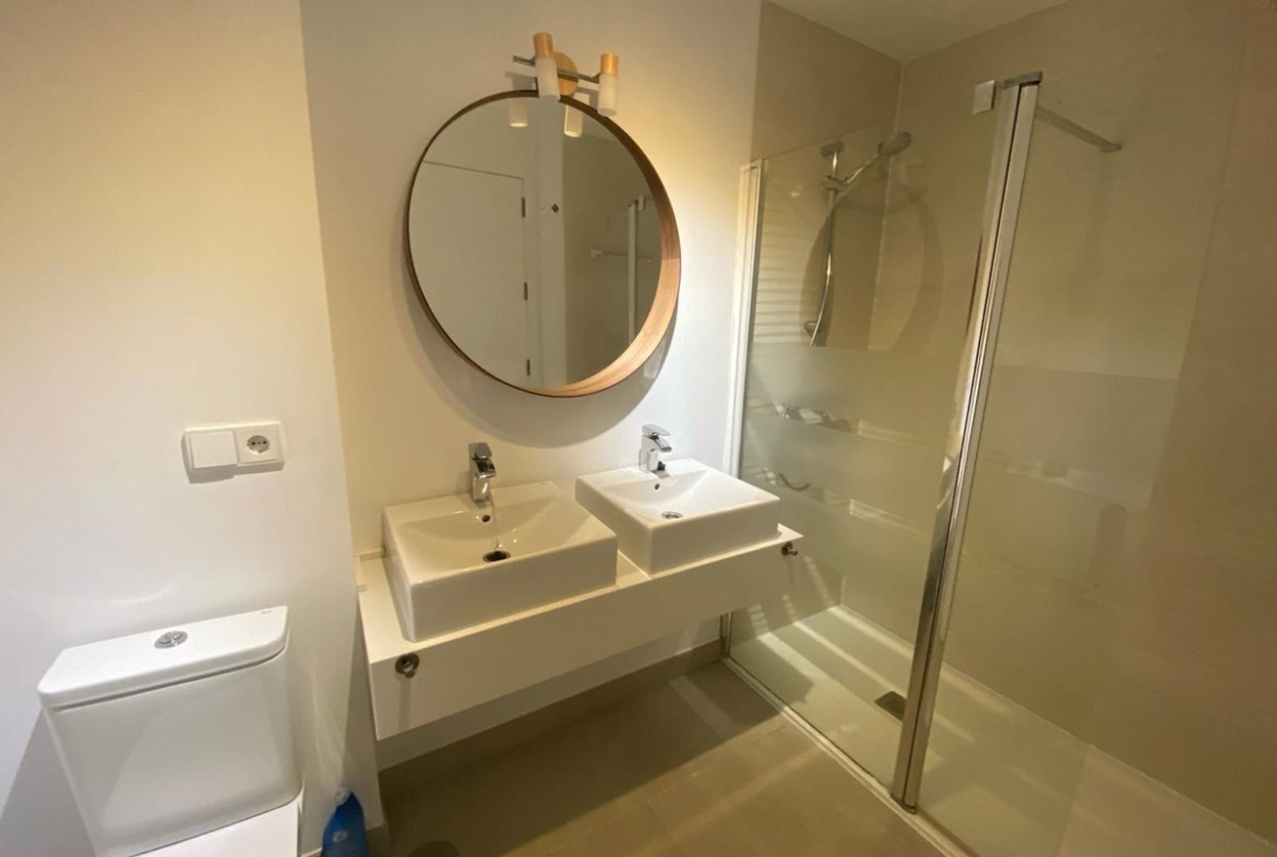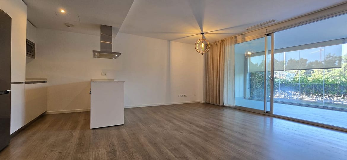 For long term rent starting September 2025. Apartment in gated community with communal swimming pool , 2 bedroom, 2 bathrooms, ground floor, terrace wih glass curtains, not furnished, fully equipped kitchen.