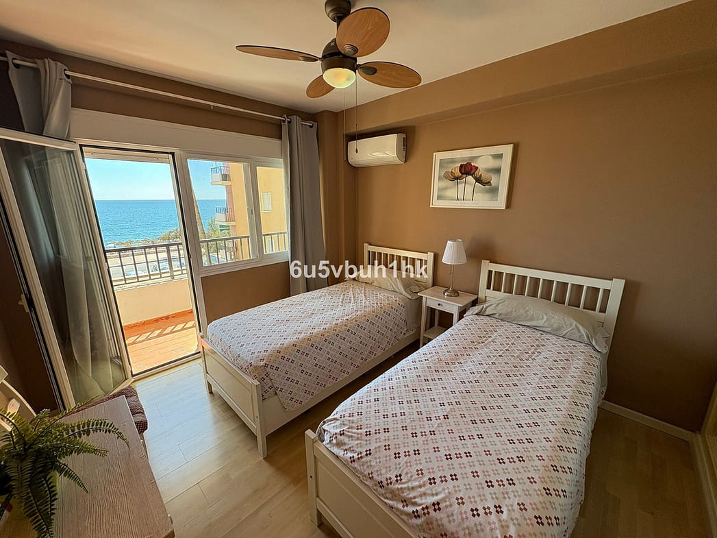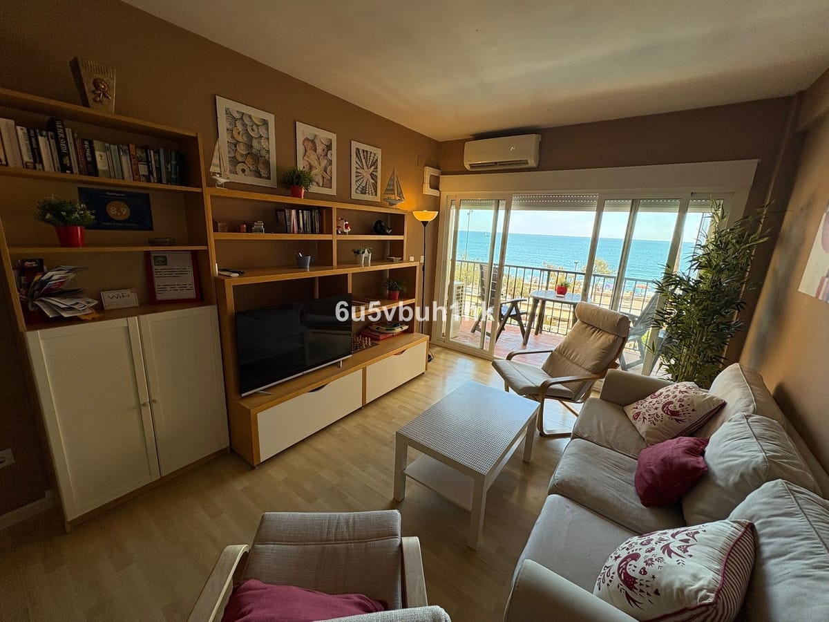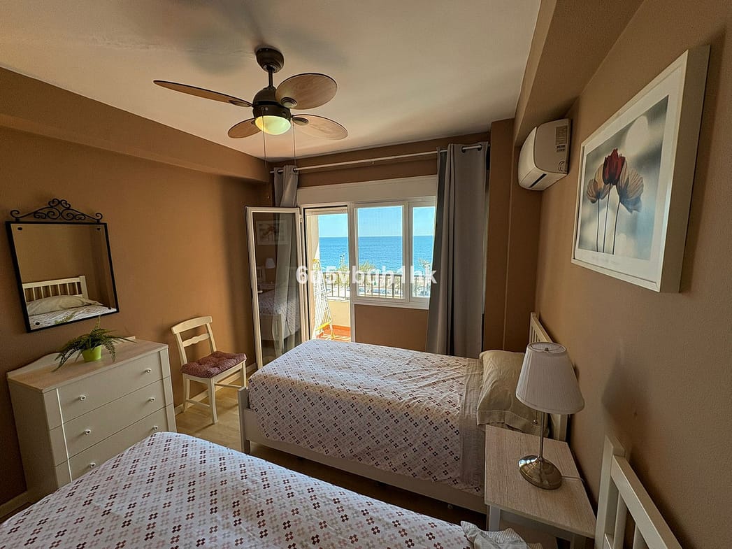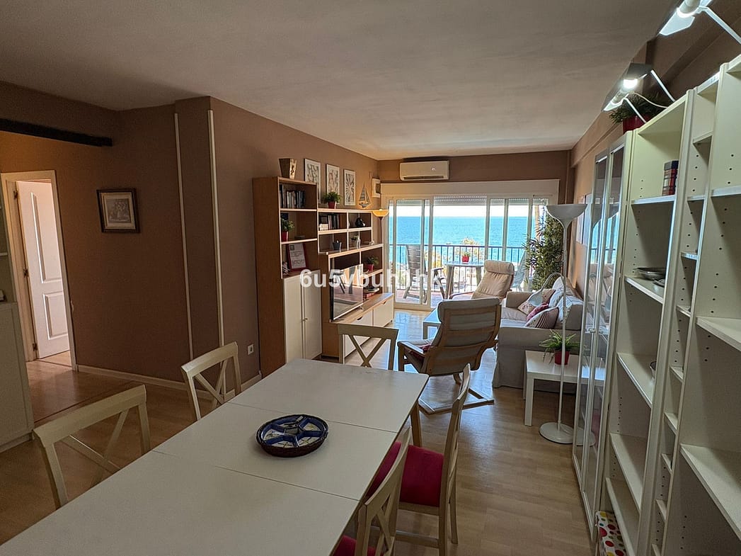 Long-term rental of this spacious frontline beach apartment on the Fuengirola Promenade. The property features two bedrooms and one bathroom, a fully equipped kitchen with utility room, and a large living-dining room that opens onto a spacious terrace with spectacular sea views. The complex offers a communal swimming pool. Proof of income is required. Deposit and current month’s rent will be requested. Available from October 1st.