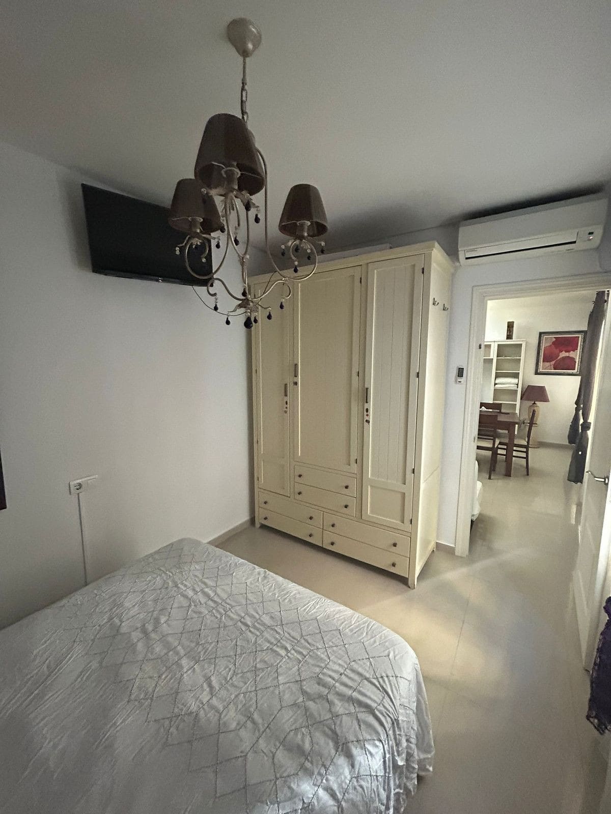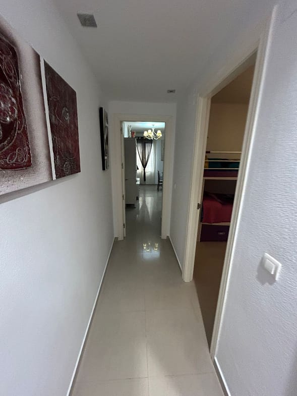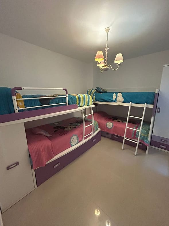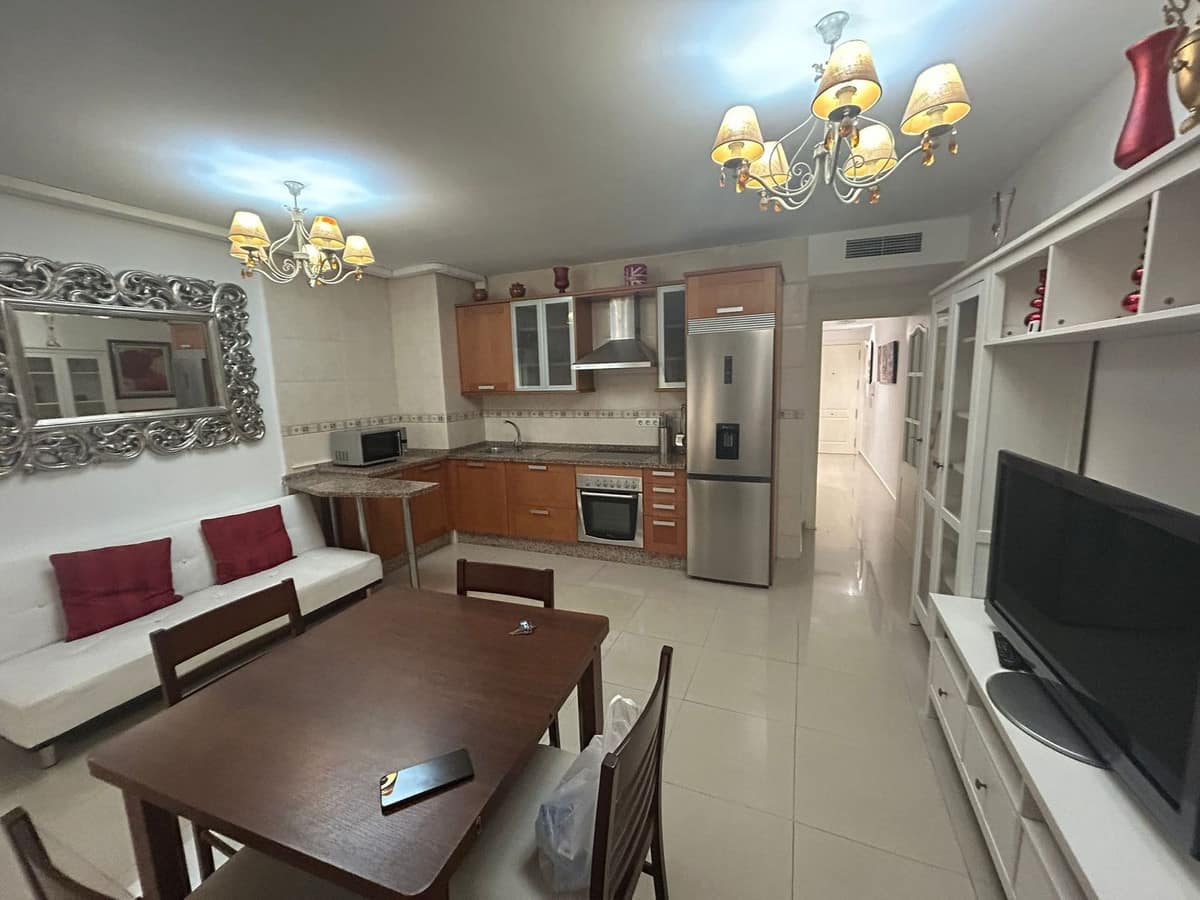 Ground floor apartment for sale, 66 m², in Fuengirola, Málaga. This apartment is just 100 meters from El Galgo beach (port area) and 100 meters from the heart of Fuengirola (Plaza La Constitución). It enjoys a prime location surrounded by shops, restaurants, and all kinds of amenities. The bus station is 150 meters away and the train station just 200 meters away. The apartment has air conditioning throughout. It features a full bathroom with shower and a window overlooking the patio, a spacious living room with two windows, an open-plan kitchen with appliances and all furnishings, a master bedroom with air conditioning and a window, and a second bedroom with two bunk beds plus a trundle bed, comfortably sleeping 5 people. It also includes wardrobes and a built-in wardrobe. There is a semi-covered patio with a laundry area. The price includes a private parking space and a storage room in the same building.