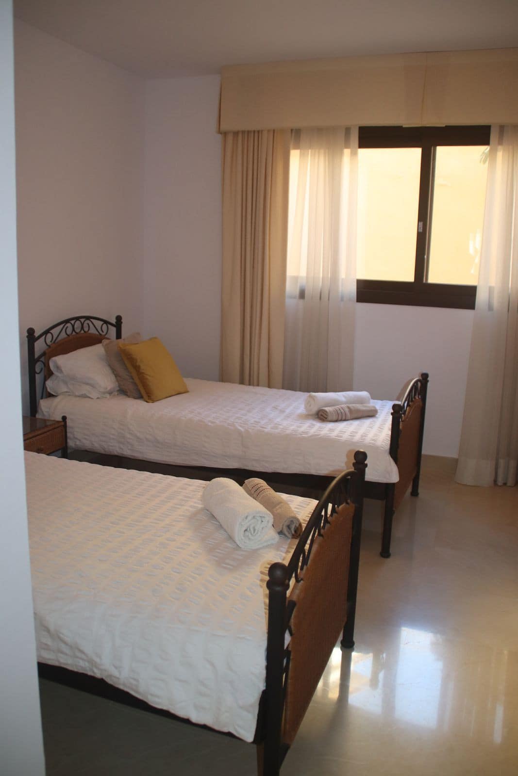 This fabulous garden apartment is located in Los Arqueros close to the Los Arqueros Golf & Country Club. This is a quiet family friendly complex only a few minutes drive to San Pedro de Alcantara, Marbella, Puerto Banus and the famous white village of Benahavis.The covered terrace is ideal for outdoor dining and relaxing in the sun. The pool is a few steps from the terrace through the mediterranean gardens.The apartment has 2 bedrooms and 2 bathrooms, a spacious lounge/diner with access to the terrace and a fully equipped kitchen. The apartment has street parking within the complex and fast internet.