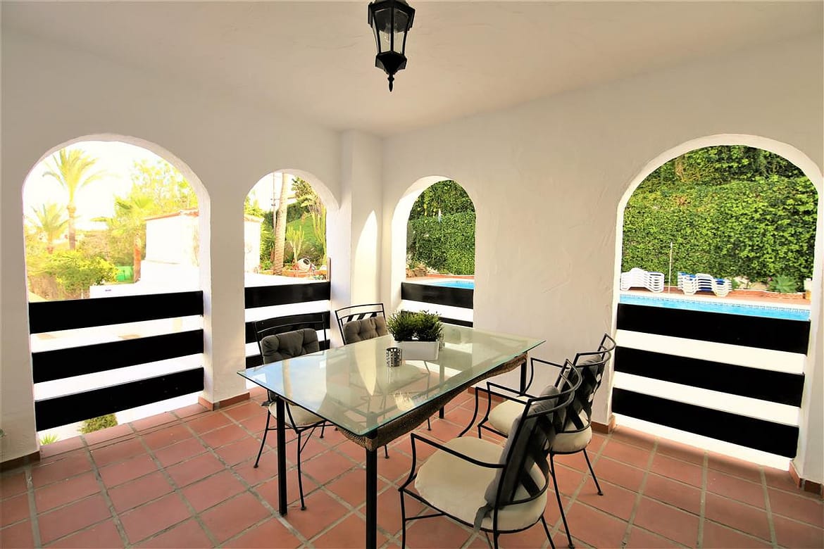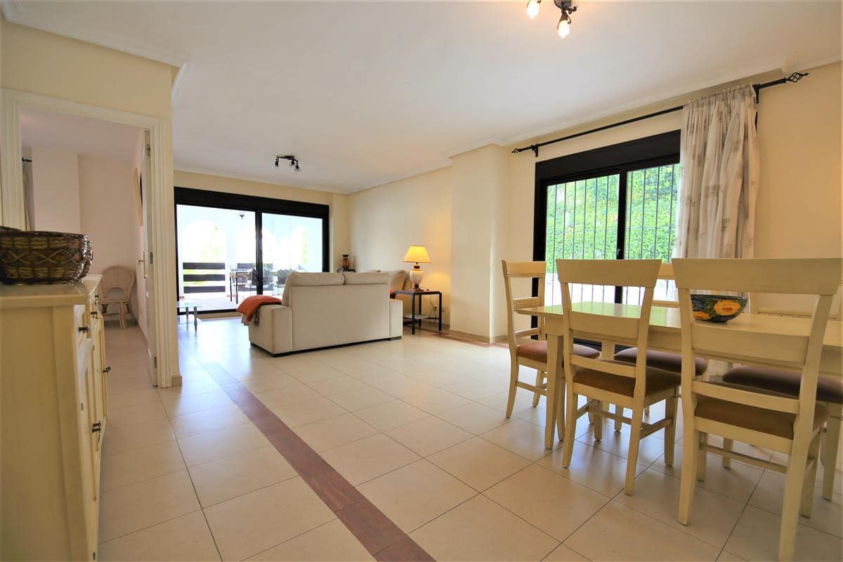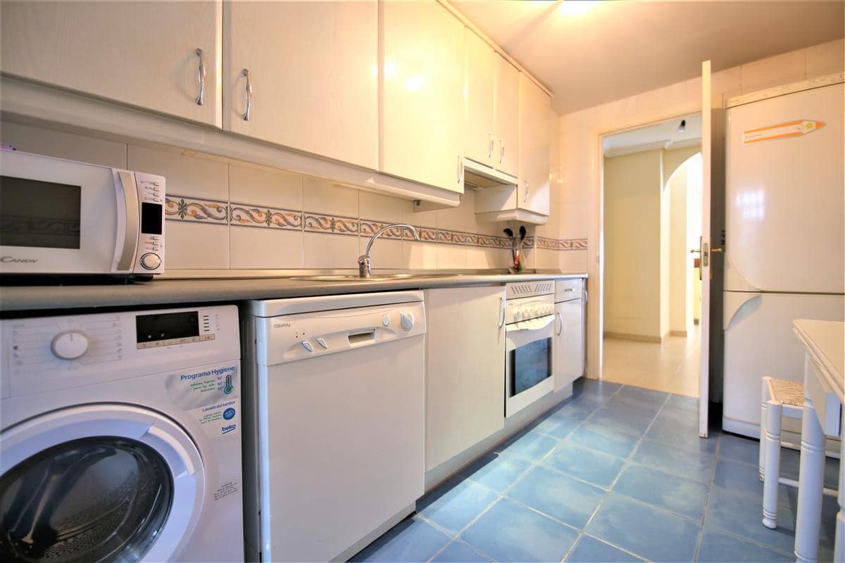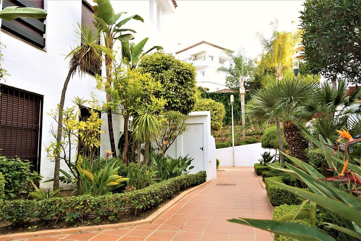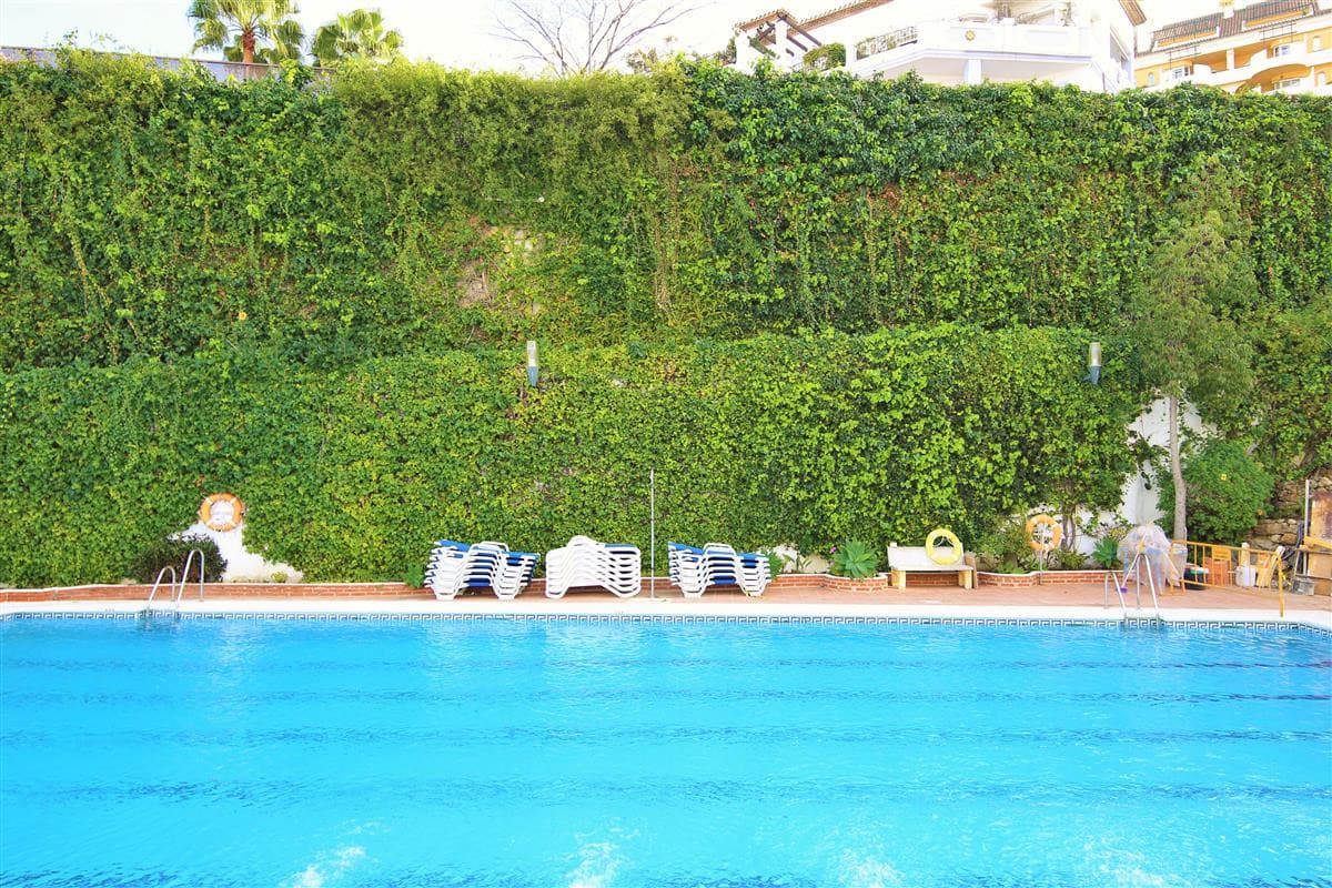 This lovely two bedroom ground floor apartment has been furnished and decorated with comfort and simplicity in mind to provide the ideal holiday accommodation where you just arrive with your suitcase and settle in. The accommodation includes a spacious and comfortable lounge/dining room with a flatscreen TV, a high speed Wifi connection along with an international TV package including Sky. A super king size bedroom with en-suite bathroom, a twin bedroom, family bathroom, and an independent fully fitted kitchen. From the lounge you walk onto the large terrace area which is ideal for escaping the afternoon sun or al fresco dining in the evenings. The kitchen is well equipped and the development has a large community swimming pool with a separate children’s pool. The apartment is fully air conditioned and includes a designated underground parking space which is particularly useful in the height of summer. The complex has two access points on either side and there is a long ramp for a wheelchair (but quite steep) for access from the supermarket side of the complex. There are many plants throughout the urbanisation making it a pleasant walkway. This property is walking distance from the famous Puerto Banus and there are many bars and restaurants within walking distance.